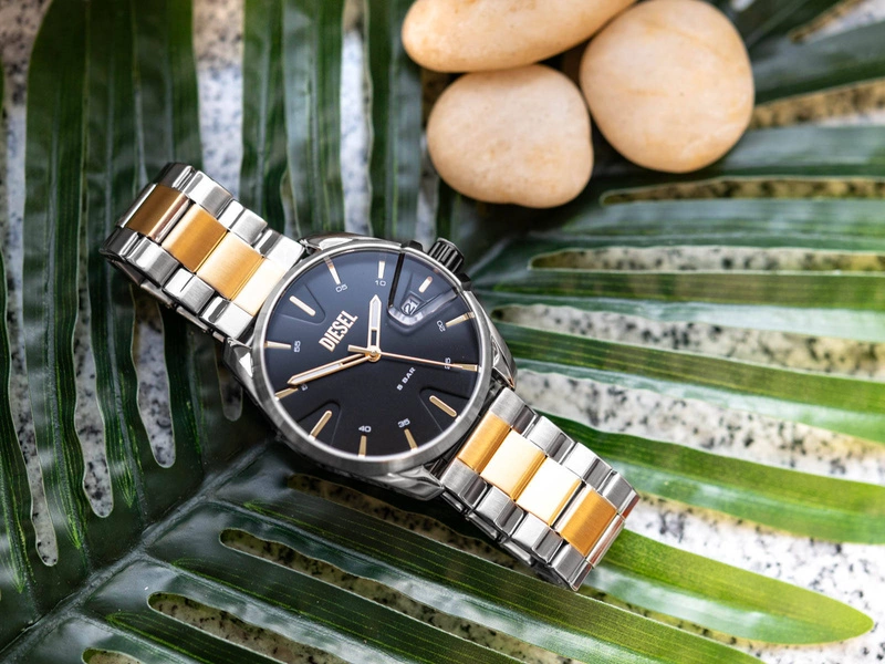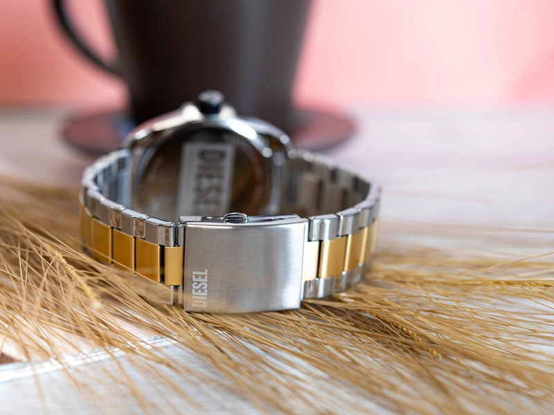 - Zegarek Męski Diesel DZ2196 srebrno-złoty na bransolecie, posiada funkcje takie jak datownik i neobrite.