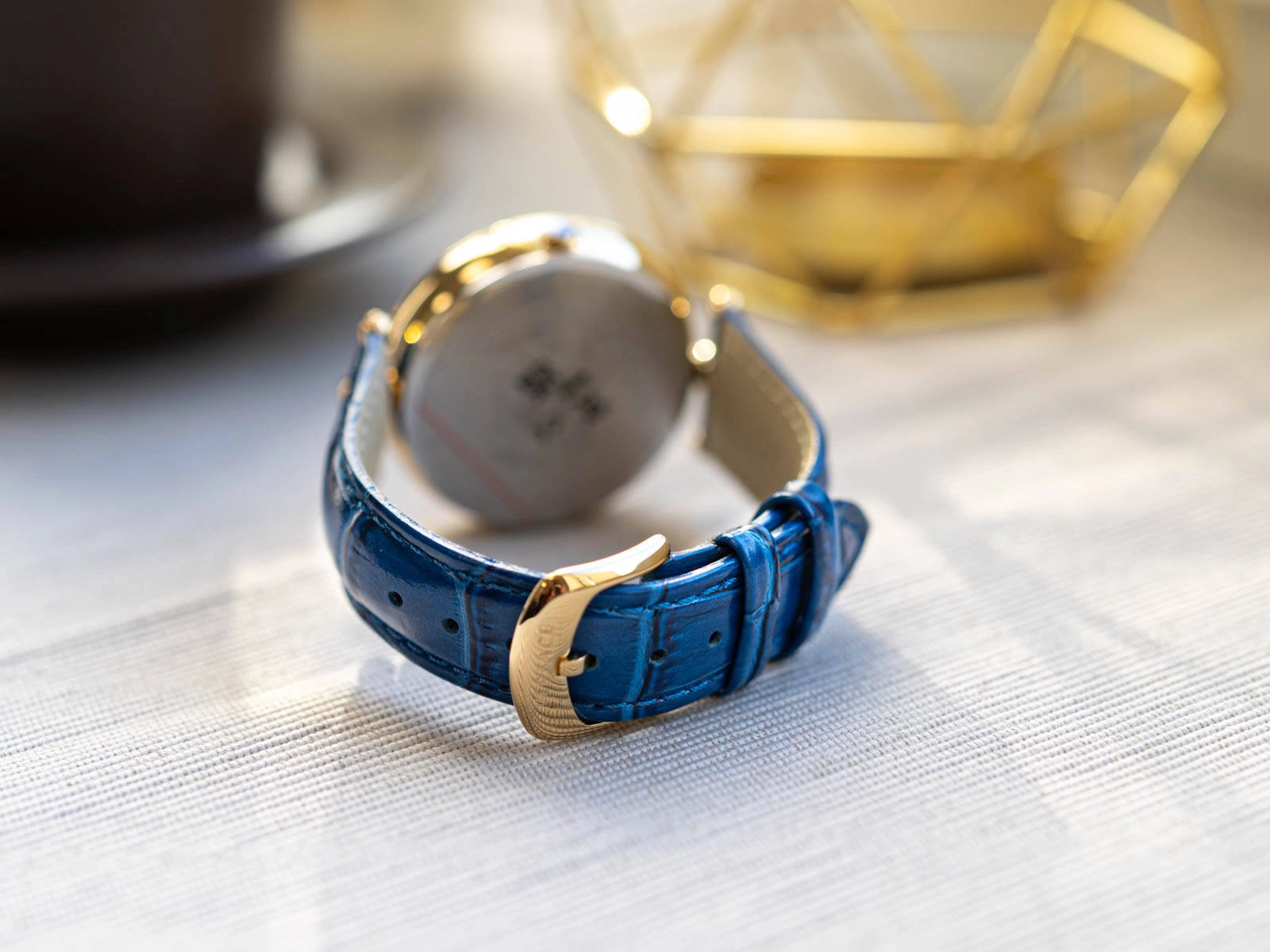 Versace VECO02922 Palazzo to czasomierz charakteryzujący się niezwykłą wytwornością. Połączenie złotej zdobionej koperty oraz niebieskiego paska czyni go modelem, który będzie pasował niemal do każdej stylizacji bez wyjątku. Cyferblat ozdobiony jest okazałą, złotą meduzą - znanym logiem producenta, która niewątpliwie przyciąga wzrok. Tarcza pokryta jest szkłem szafirowym, które odporne jest na uszkodzenia oraz łatwe do wypolerowania. Versace VECO02922 wykonany z dbałością o najmniejszy detal świetnie prezentuje się na delikatnym, damskim nadgarstku. Doskonale komponuje się ze strojem wieczorowym, ale także codzienną modną kreacją. Czasomierz pakowany jest w eleganckie, logowane pudełko, może stać się wyjątkowym opakowaniem na prezent.