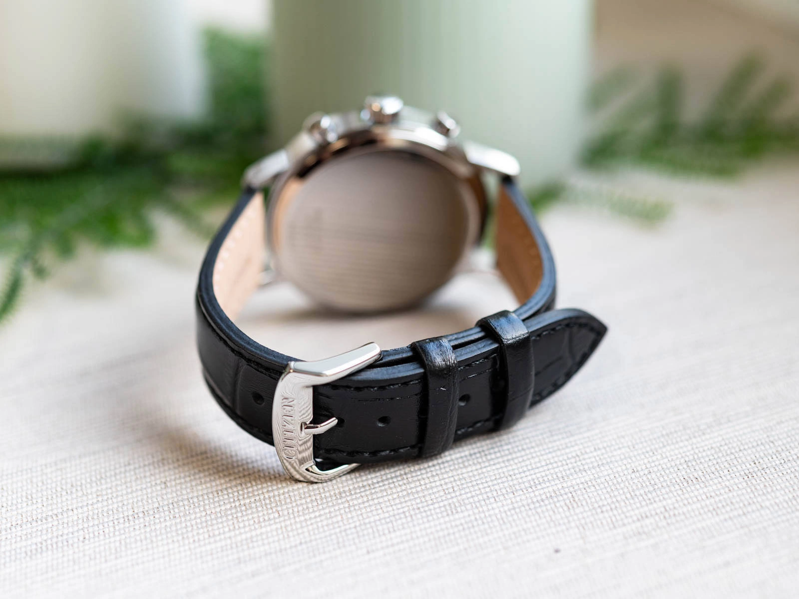 Citizen CA7069-24X to klasyczny model, który doskonale uzupełni stylizację w stylu biznesowym. Lśniąca koperta w kolorze srebrnym została wykonana z wysokiej jakości stali szlachetnej. Czarny, skórzany pasek jest niezwykle wygodny i świetnie leży na nadgarstku, nie powodując dyskomfortu. Zielona tarcza mieści w sobie datownik, który wskazuje dzień miesiąca oraz łatwy w obsłudze stoper analogowy, który mierzy czas do jednej godziny. Czasomierz został zaopatrzony w panel słoneczny, który ładuje akumulator za pomocą dowolnego światła. Citizen Vintage prezentuje się znakomicie na męskim nadgarstku, bez wątpienia spełni oczekiwania niejednego Pana. Model jest zapakowany w oryginalne opakowanie producenta, więc może w nim być podarowany na prezent.