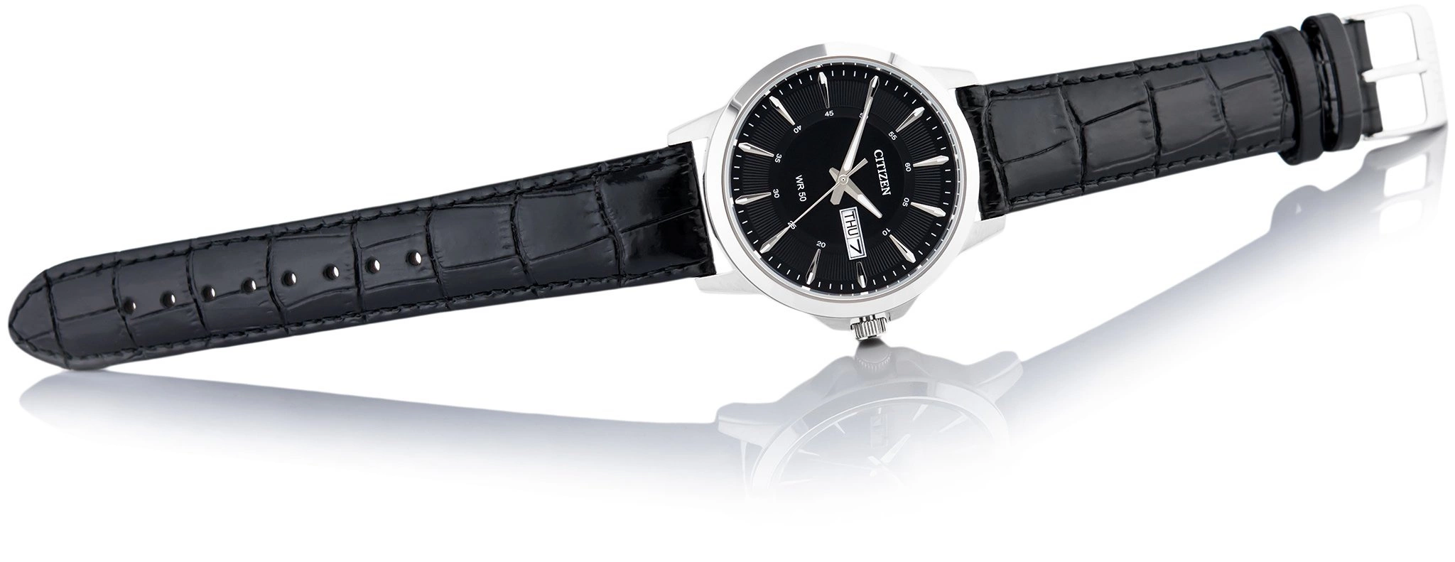 • Zegarek Męski Citizen BF2011-01E czarny na pasku, posiada funkcję datownika.