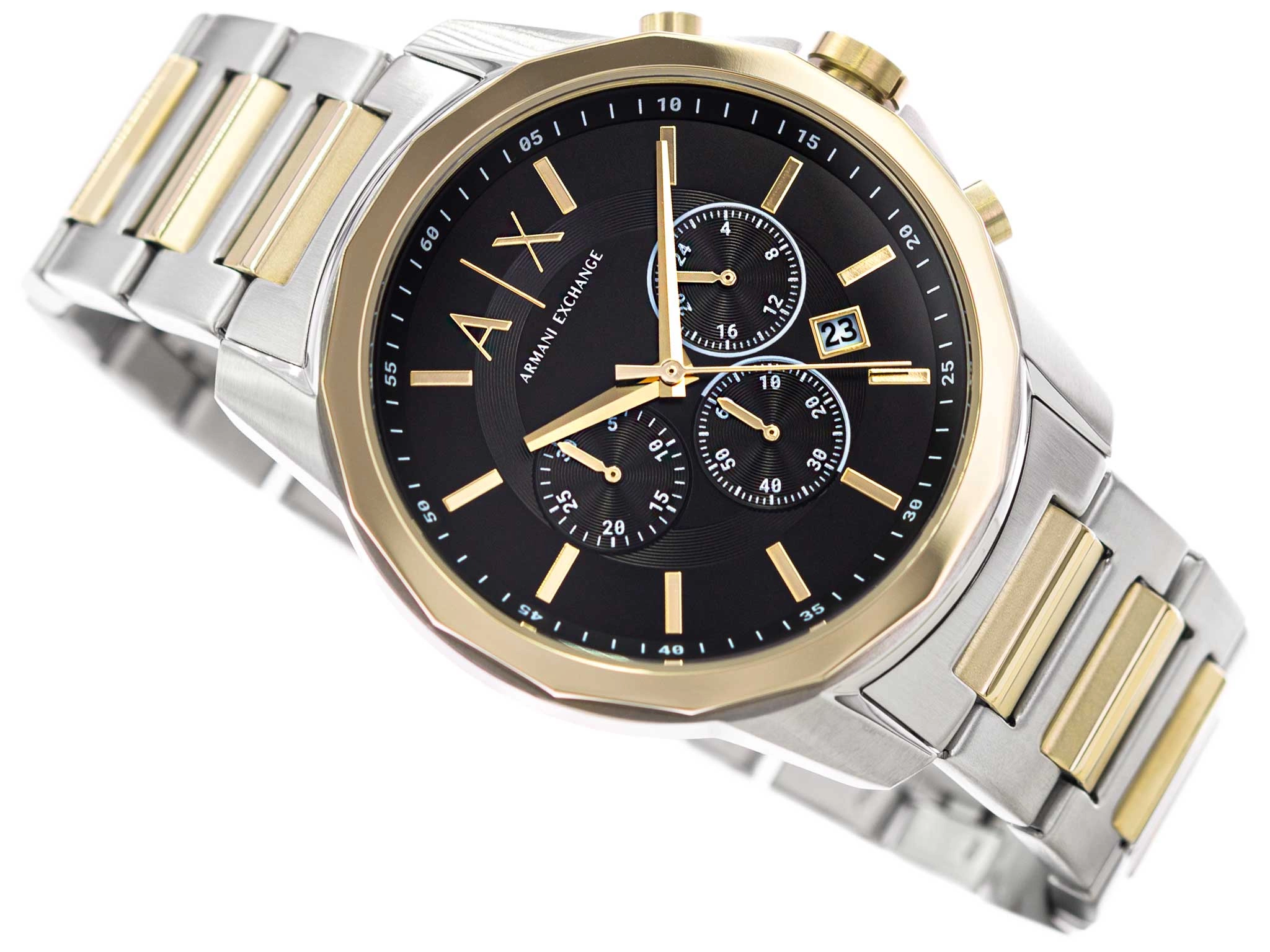 • Zegarek Męski Armani Exchange AX7148SET srebrno-złoty na bransolecie, posiada funkcje takie jak stoper i datownik.