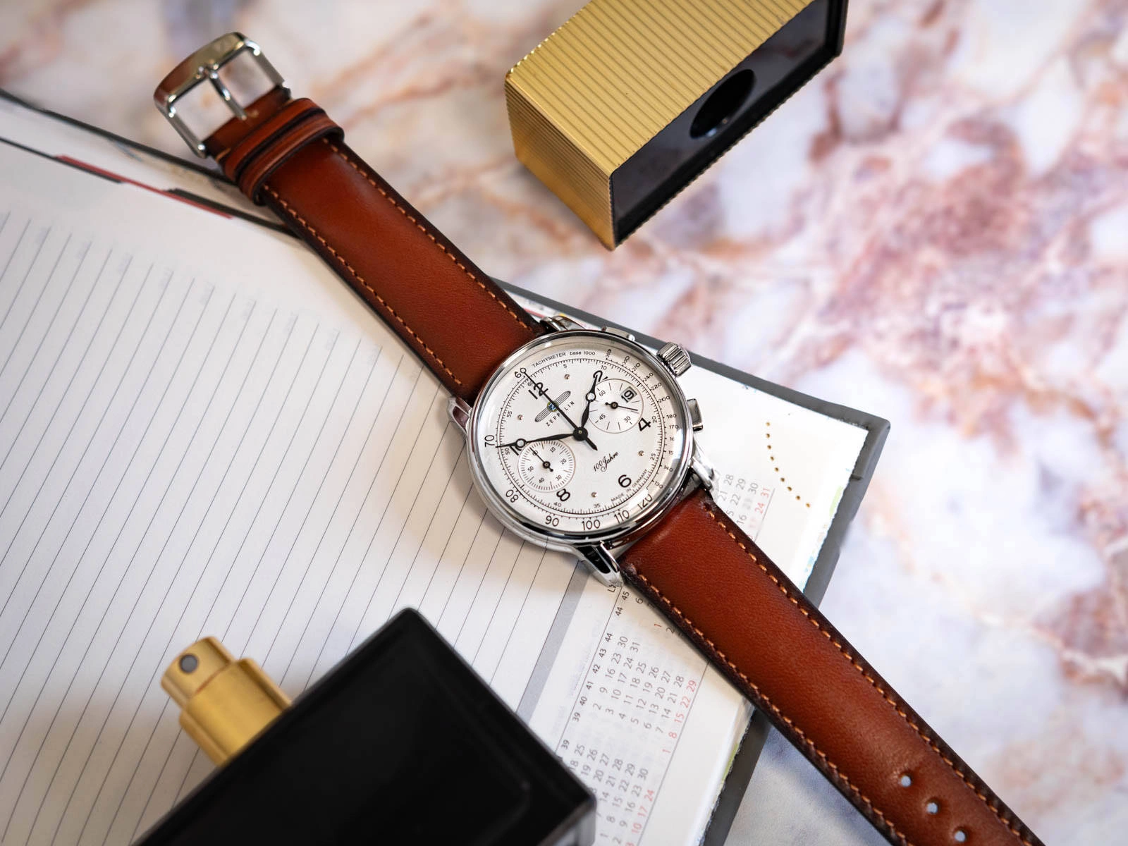- Zegarek Męski Zeppelin 8676-1 brązowy na pasku, posiada funkcje takie jak stoper i datownik.