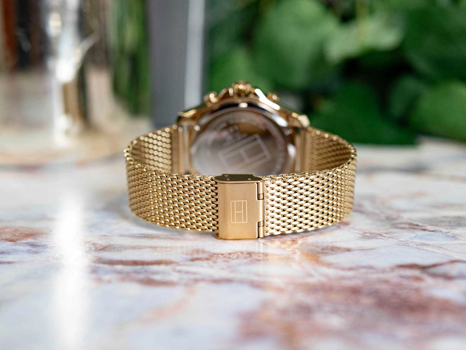 - Zegarek Męski Tommy Hilfiger 1792093 złoty na bransolecie posiada funkcję dual-time.