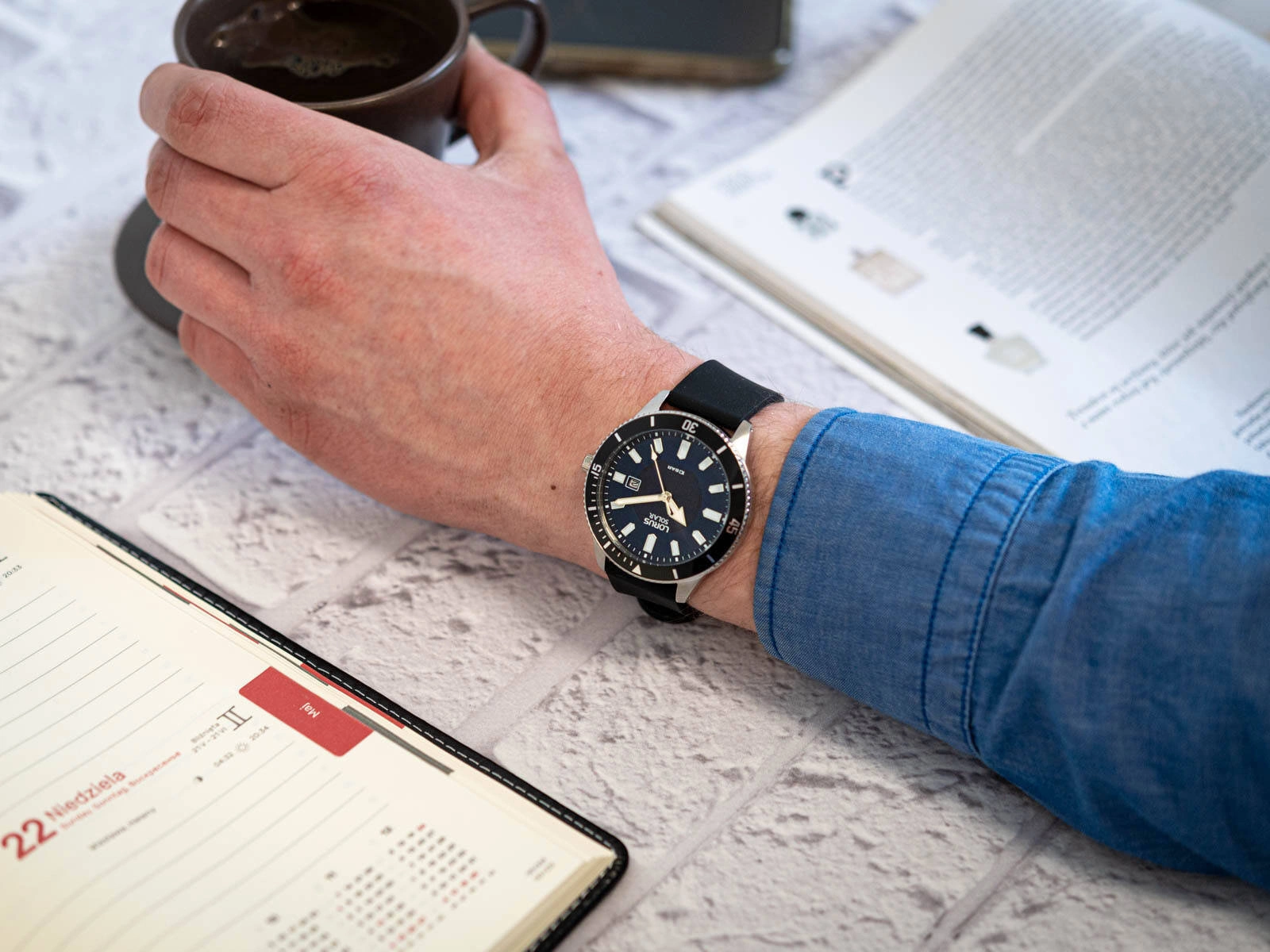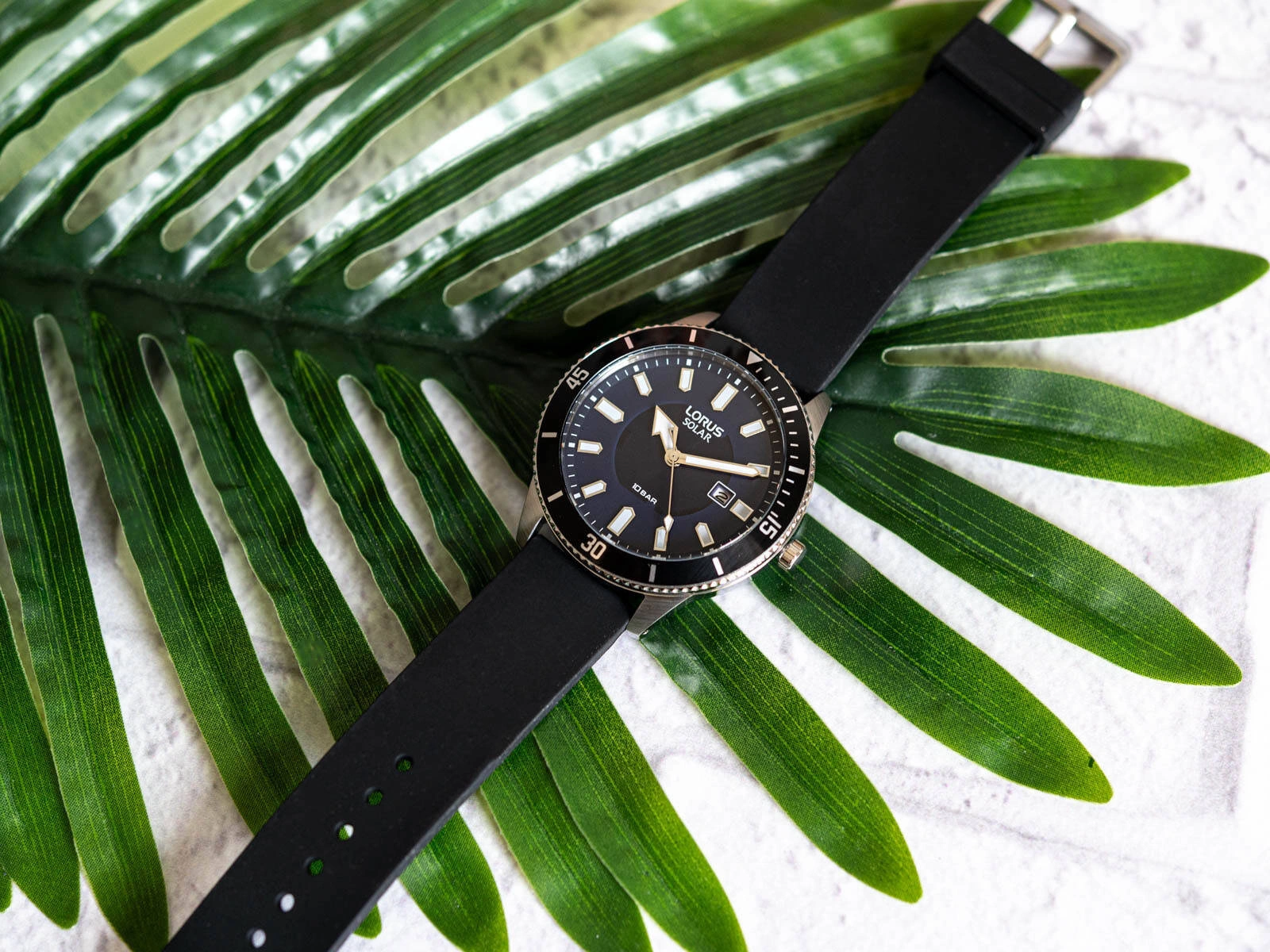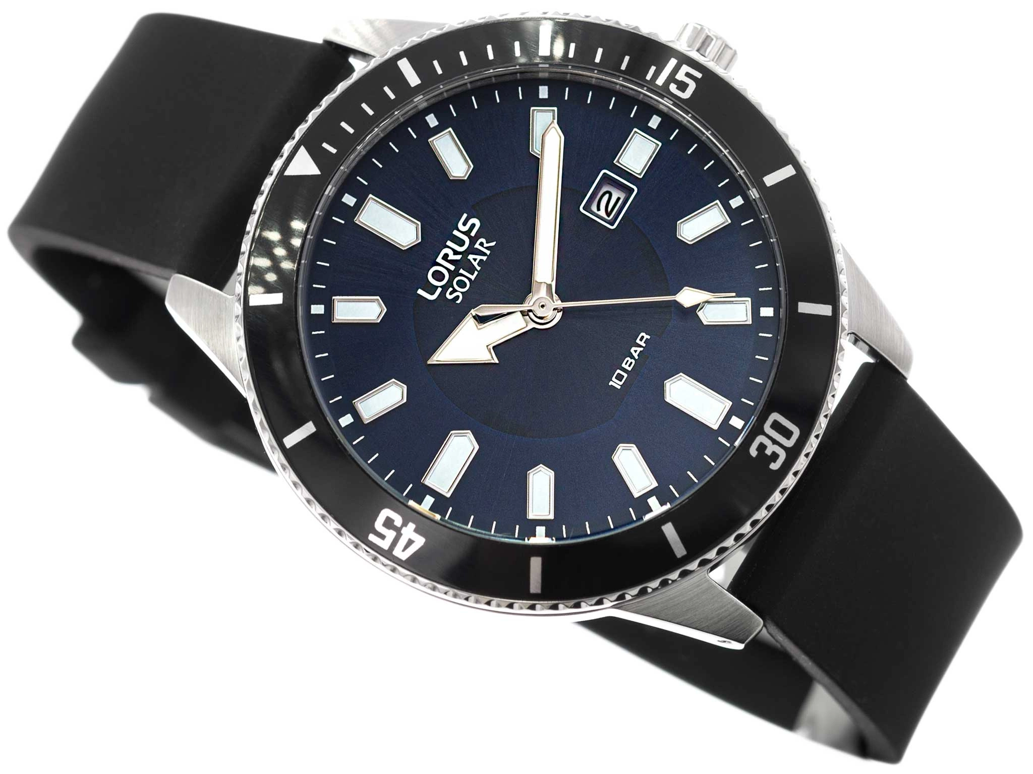 Lorus RX319AX9 Solar to propozycja dla mężczyzn lubiących klasykę w sportowym wydaniu. Srebrna koperta została zawieszona na pasku z wysokiej jakości tworzywa sztucznego. Pasek ten jest elastyczny i miękki - dopasowuje się do nadgarstka nie tworząc dyskomfortu. Granatowa tarcza prezentuje białe indeksy, które są doskonale widoczne na tarczy i nie sprawiają problemu z odczytem godzin. Dodatkowo wskazówki i indeksy zostały pokryte powłoką fluorescencyjną, która po uprzednim naświetleniu będzie świecić w ciemności przez jakiś czas. Przy godzinie 3 zlokalizowano datownik wskazujący aktualny dzień miesiąca. Niewątpliwym atutem Lorus RX319AX9 jest wodoszczelność na poziomie 10ATM, która umożliwia pływanie z zegarkiem na ręku bez obaw o zalanie mechanizmu. Połączenie kolorystyczne oraz funkcjonalność sprawia, że to idealny dodatek do codziennego stroju. Eleganckie pudełko dołączone do tego modelu stanowi świetny pomysł na prezent.