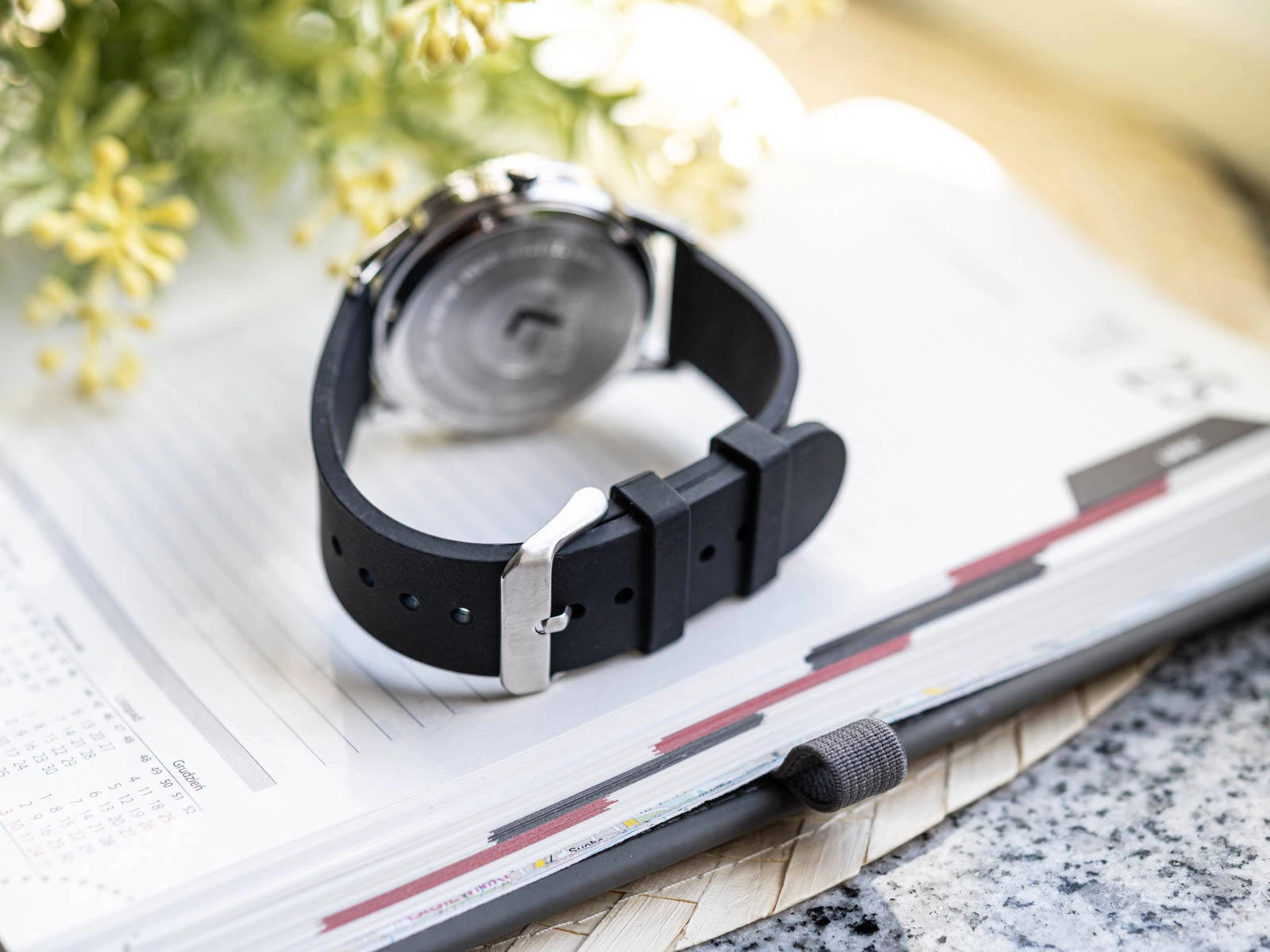 - Panel słoneczny: panele słoneczne na tarczy ładujące baterie zegarka (nie wymaga wymiany baterii).