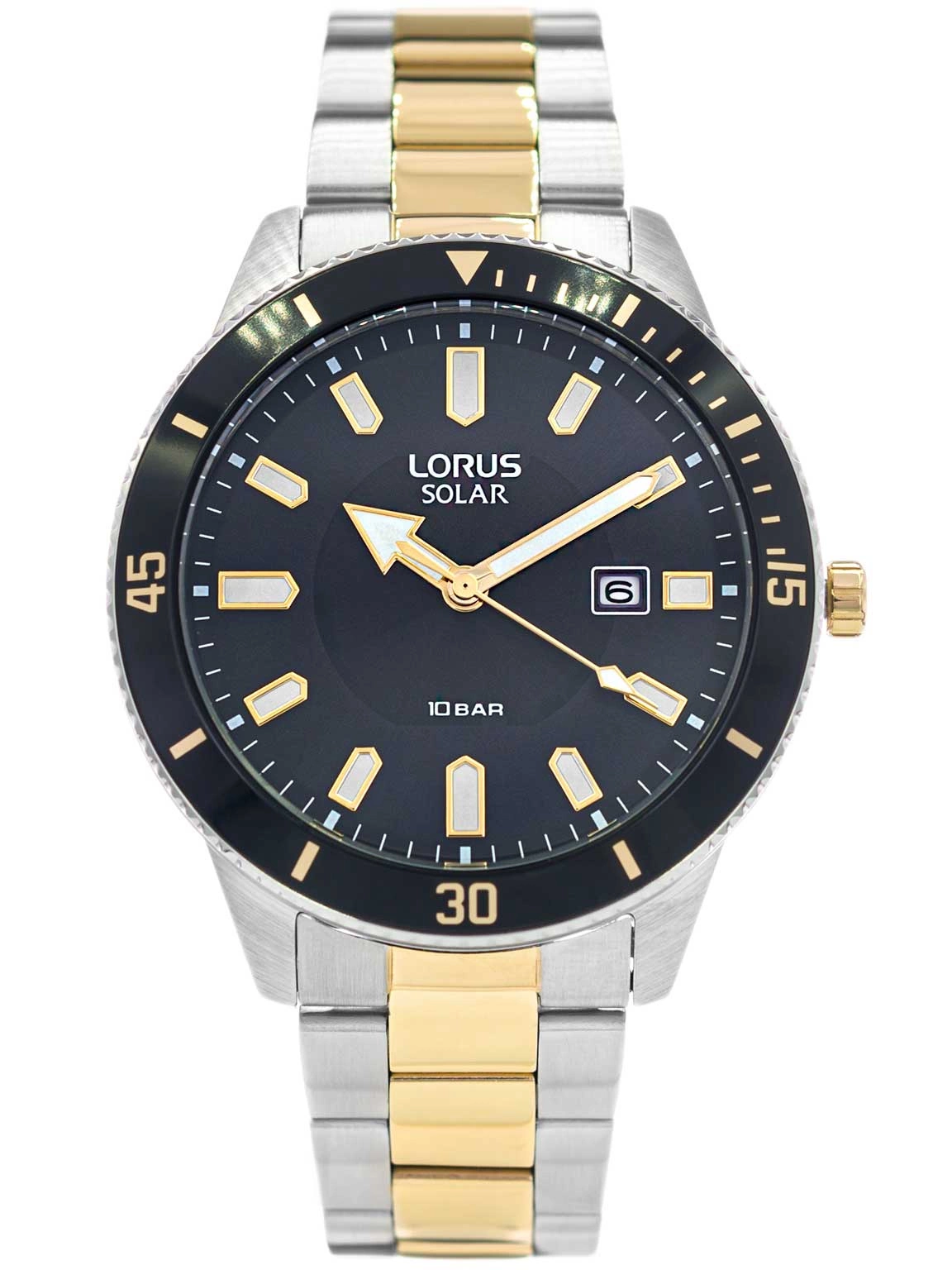 Lorus RX327AX9 Solar to czasomierz, który perfekcyjnie łączy ponadczasowy design z nowoczesną technologią. Napędzany jest precyzyjnym mechanizmem kwarcowym, który czerpie energię ze światła za pomocą panelu słonecznego umieszczonego na tarczy. Eliminuje to potrzebę regularnej wymiany baterii. Srebrno-złota bransoleta ze stali nierdzewnej dodaje charakteru i uniwersalności, pasując do każdego stroju i okazji. Wyjątkowa, szara tarcza, akcentowana złoto-białymi indeksami i wskazówkami, gwarantuje znakomitą czytelność. Praktyczna funkcja datownika, umieszczona przy godzinie trzeciej, umożliwia łatwe śledzenie daty. Zegarek ten, zaprojektowany z myślą o codziennym użytkowaniu, charakteryzuje się wodoodpornością klasy 100M. Lorus RX327AX9 to doskonały wybór dla mężczyzn ceniących aktywny tryb życia oraz elegancję w dodatkach. Doskonale współgra z różnorodnymi strojami, od codziennych, casualowych zestawów po wyszukane garnitury na specjalne okazje.