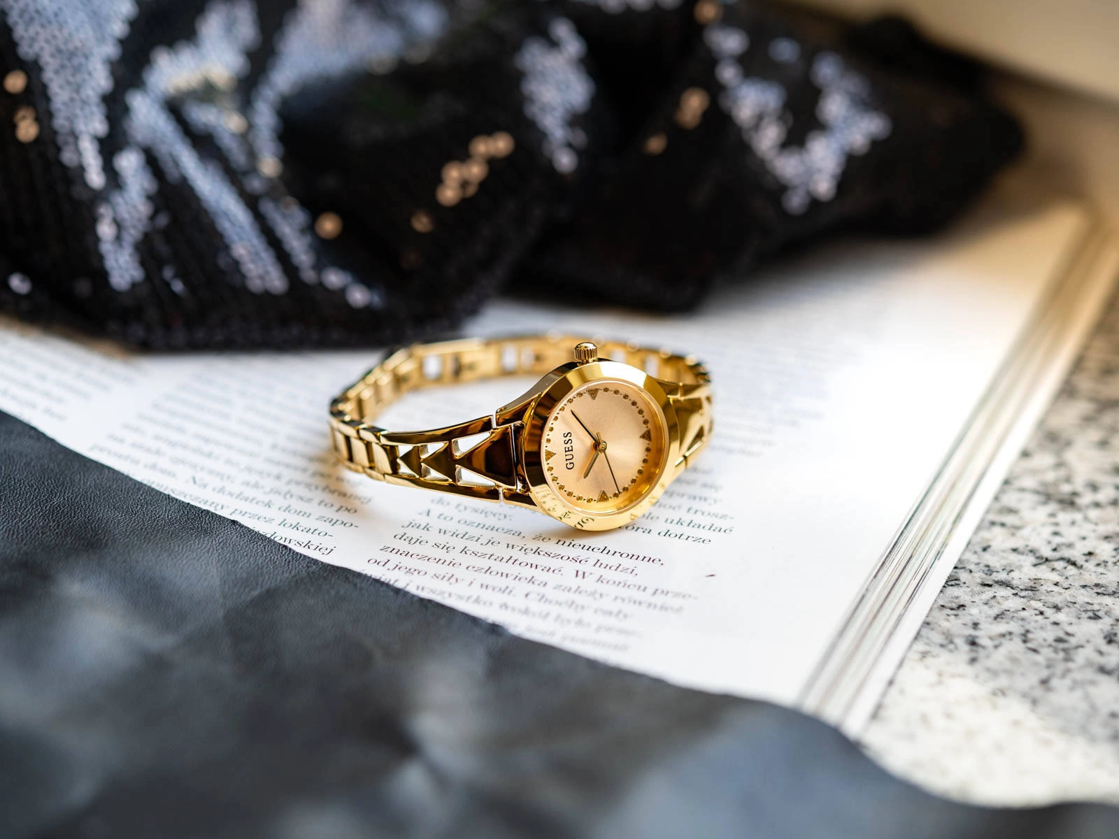 • Zegarek Damski Guess GW0609L2 złoty na bransolecie.