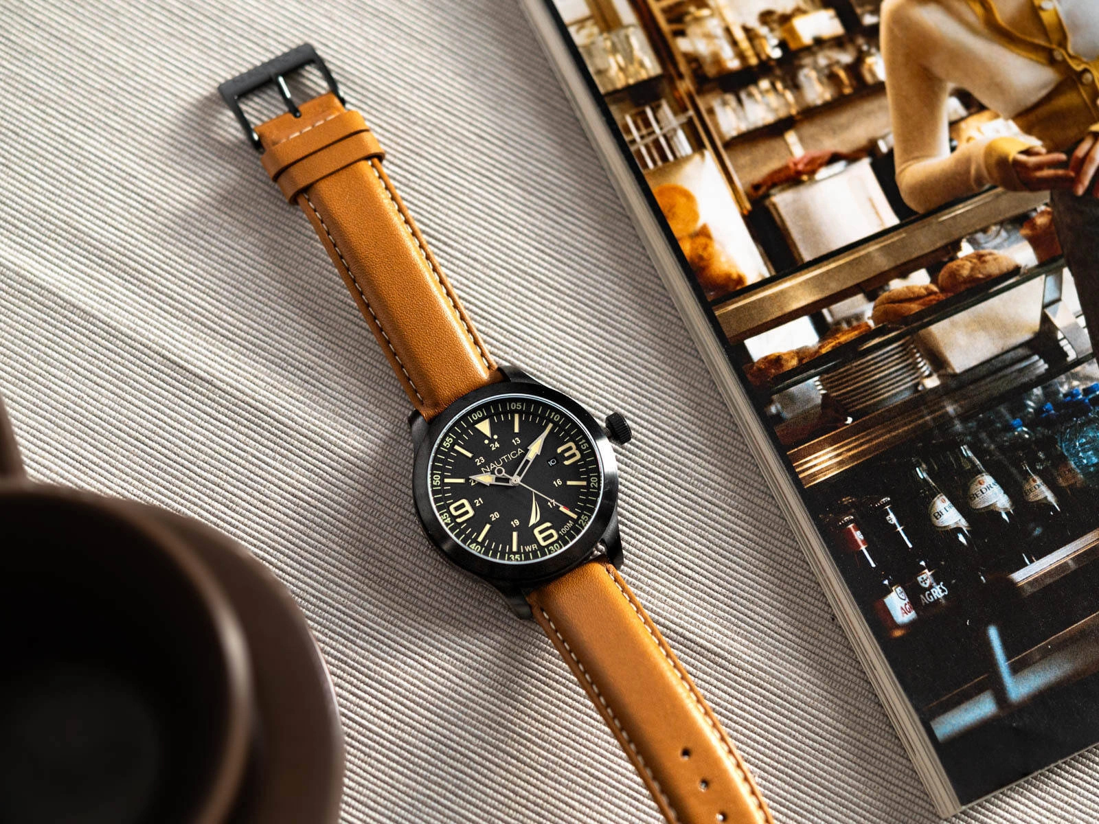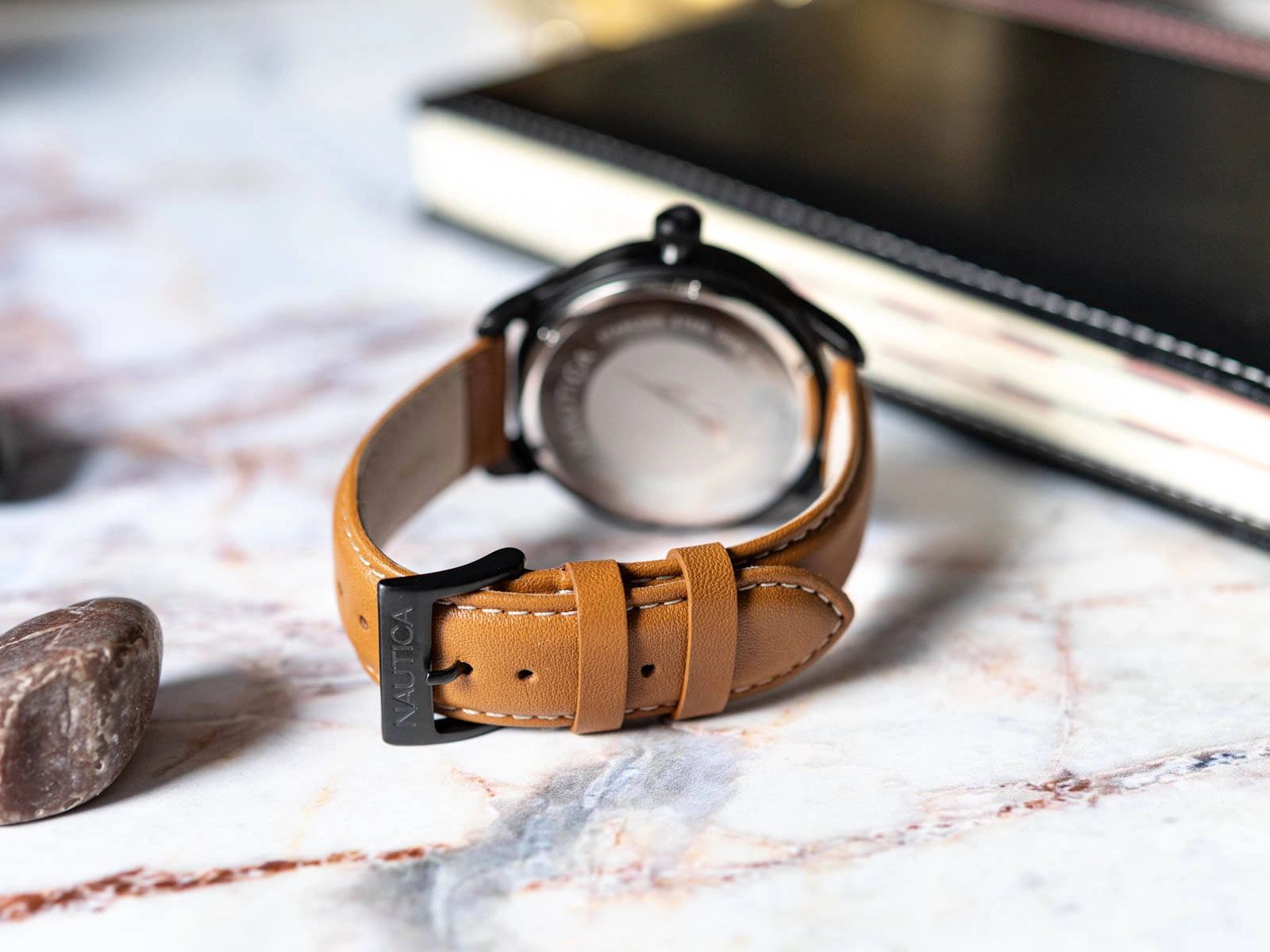 Nautica Point Loma NAPPLS017 to idealna propozycja dla mężczyzn, szukających zegarka uniwersalnego, który wpasuje się w codzienną stylizację. Stalowa czarna koperta została zawieszona na skórzanym, gładkim, jasnobrązowym pasku. Aktualny dzień miesiąca wskazywany jest przez datownik, umieszczony na matowym cyferblacie przy godzinie 3. Klasa wodoszczelności 100M, umożliwia pływanie z zegarkiem na ręku. Aby właściwość ta była zachowana, koronka musi być zakręcona do końca, by woda nie dostała się do wnętrza. Model ten zapakowany jest w oryginalne pudełko, więc jest gotowy do podarowania na prezent.