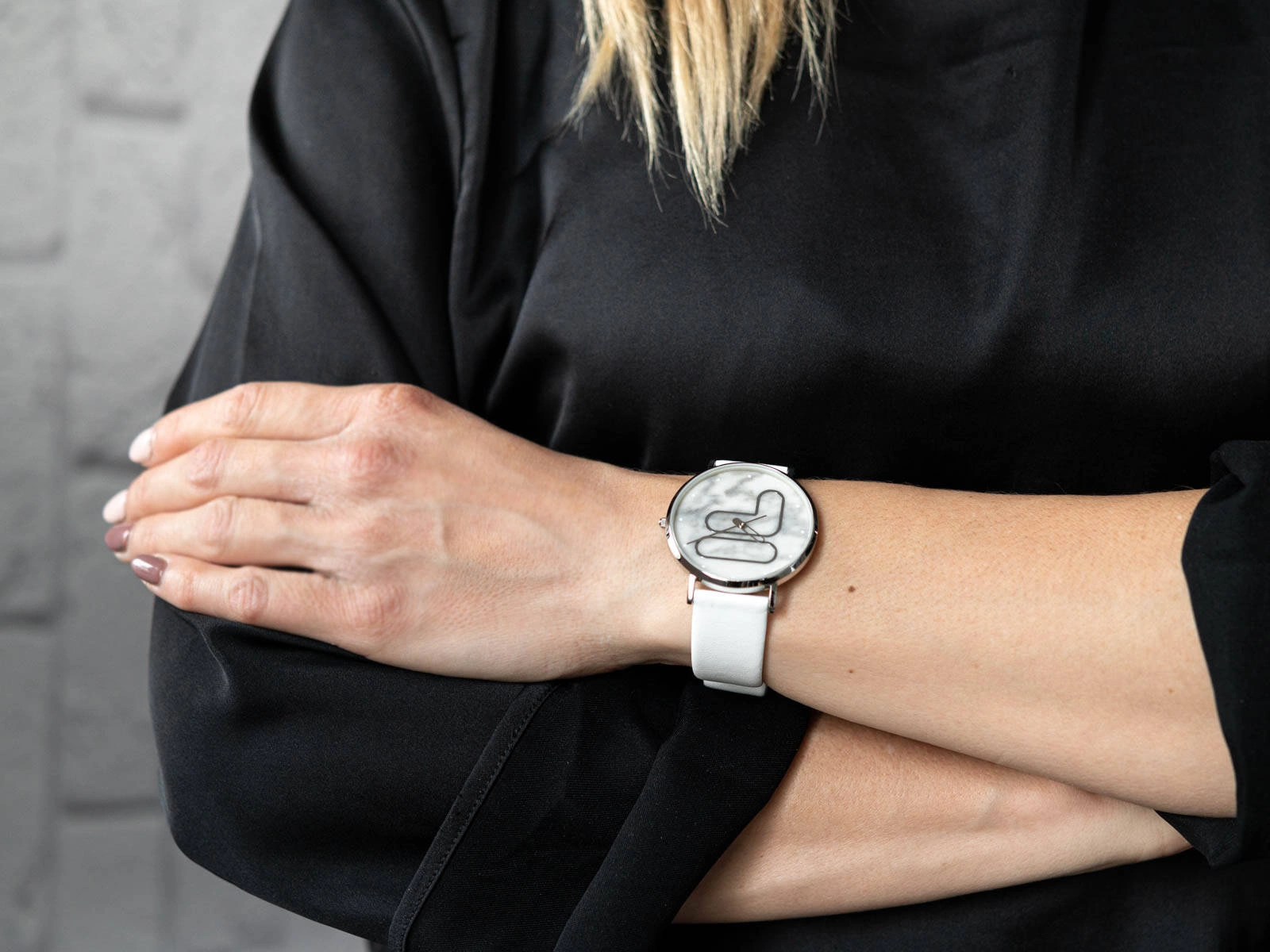 Damski zegarek Fila 38-192-001 będzie idealnym dopełnieniem większości codziennych stylizacji. Ze względu na klasyczne i uniwersalne połączenie kolorów -błyszczącego srebrnego, bieli i szarości, zegarek efektownie prezentuje się na kobiecym nadgarstku. Na marmurkowym cyferblacie, godziny oznaczone są za pomocą białych kropek, aktualny czas wskazują fantazyjne wskazówki -godzinowa i minutowa. Smukła, stalowa koperta zawieszona jest na miękkim, gładkim, skórzanym pasku. Model Fila 38-192-001 pracuje w oparciu o kwarcowy mechanizm japoński MIYOTA. Klasa wodoszczelności 30M, oznacza odporność na lekkie zachlapania. Czasomierz świetnie sprawdzi się na prezent dla fana marki FILA, zapakowany jest w oryginalne opakowanie.