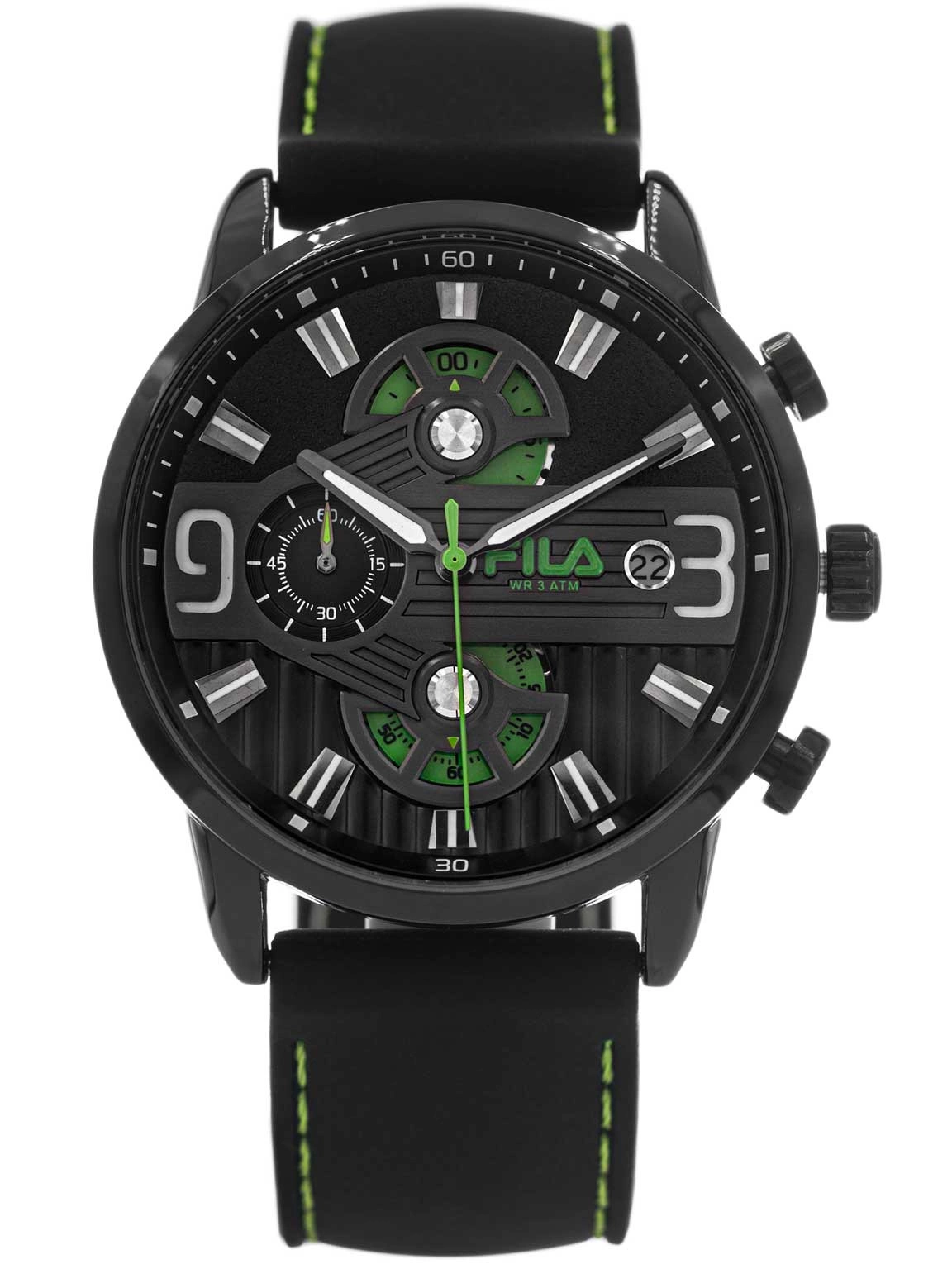 • Zegarek Męski FILA 38-175-002 Czarny na pasku. Posiada funkcje stoper i datownik.