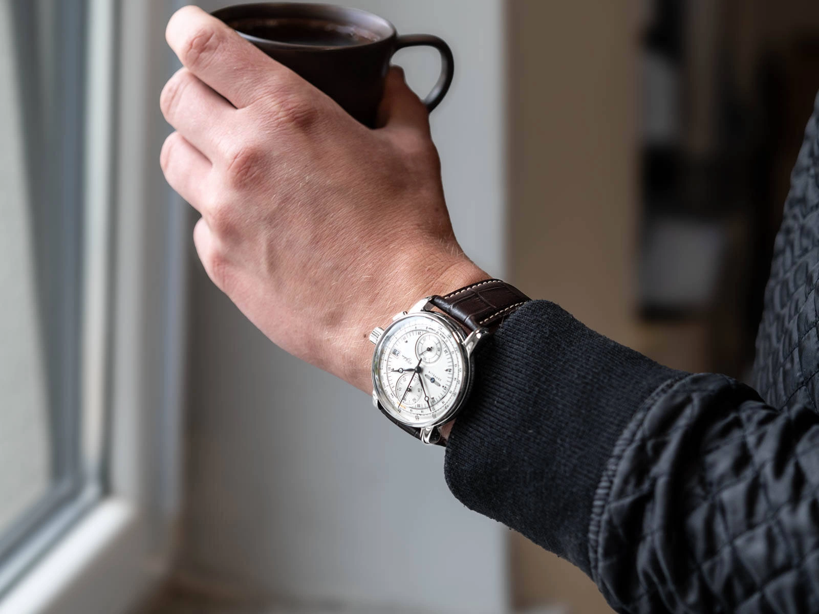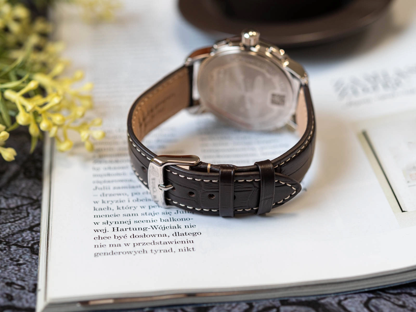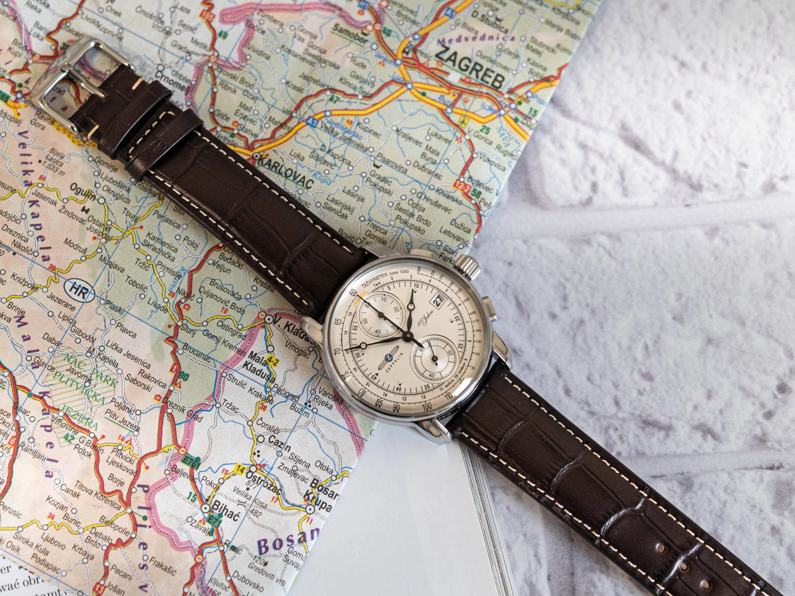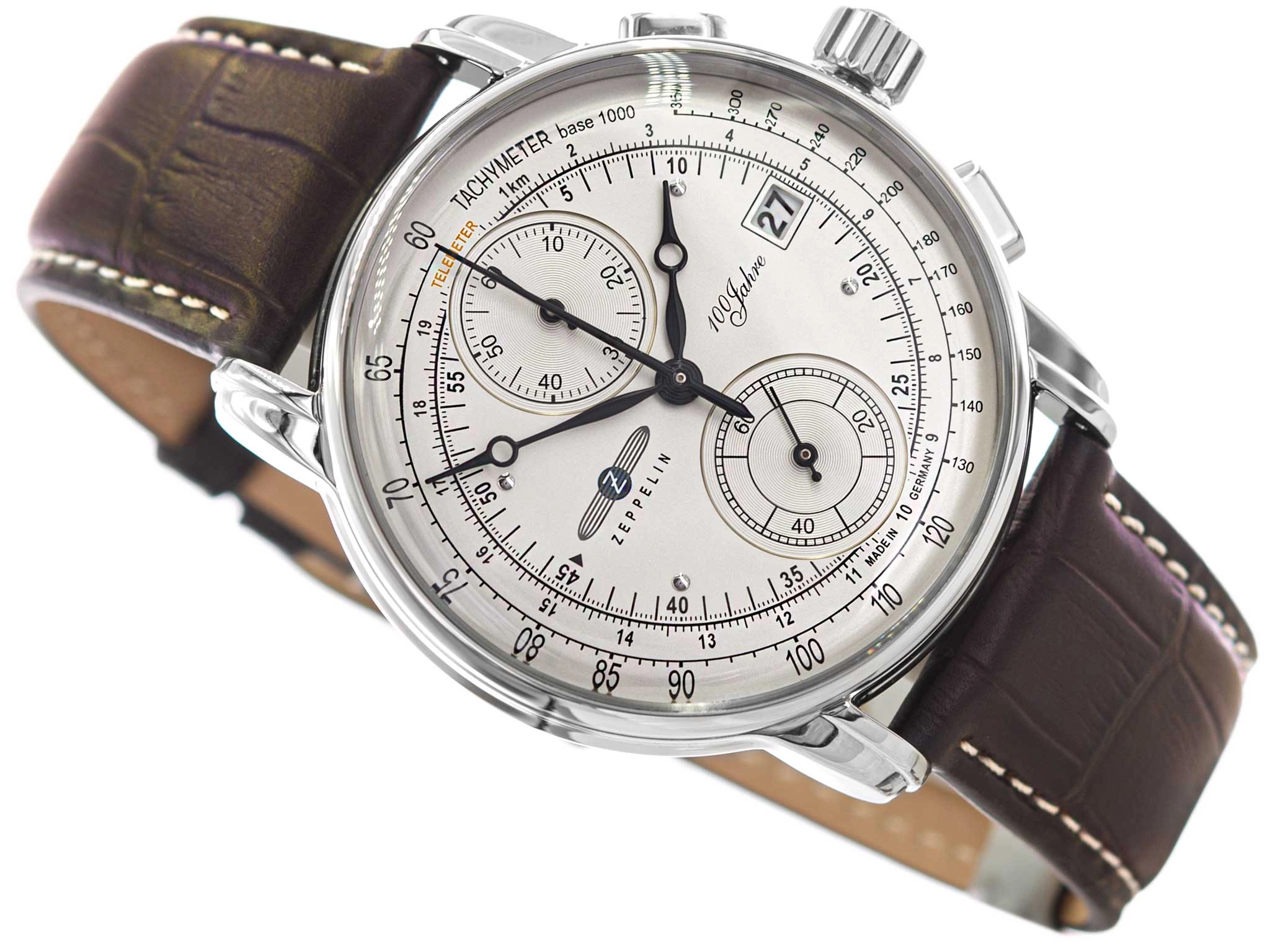 - Zegarek Męski Zeppelin 8670-1 brązowy na pasku, posiada funkcje takie jak stoper i datownik.