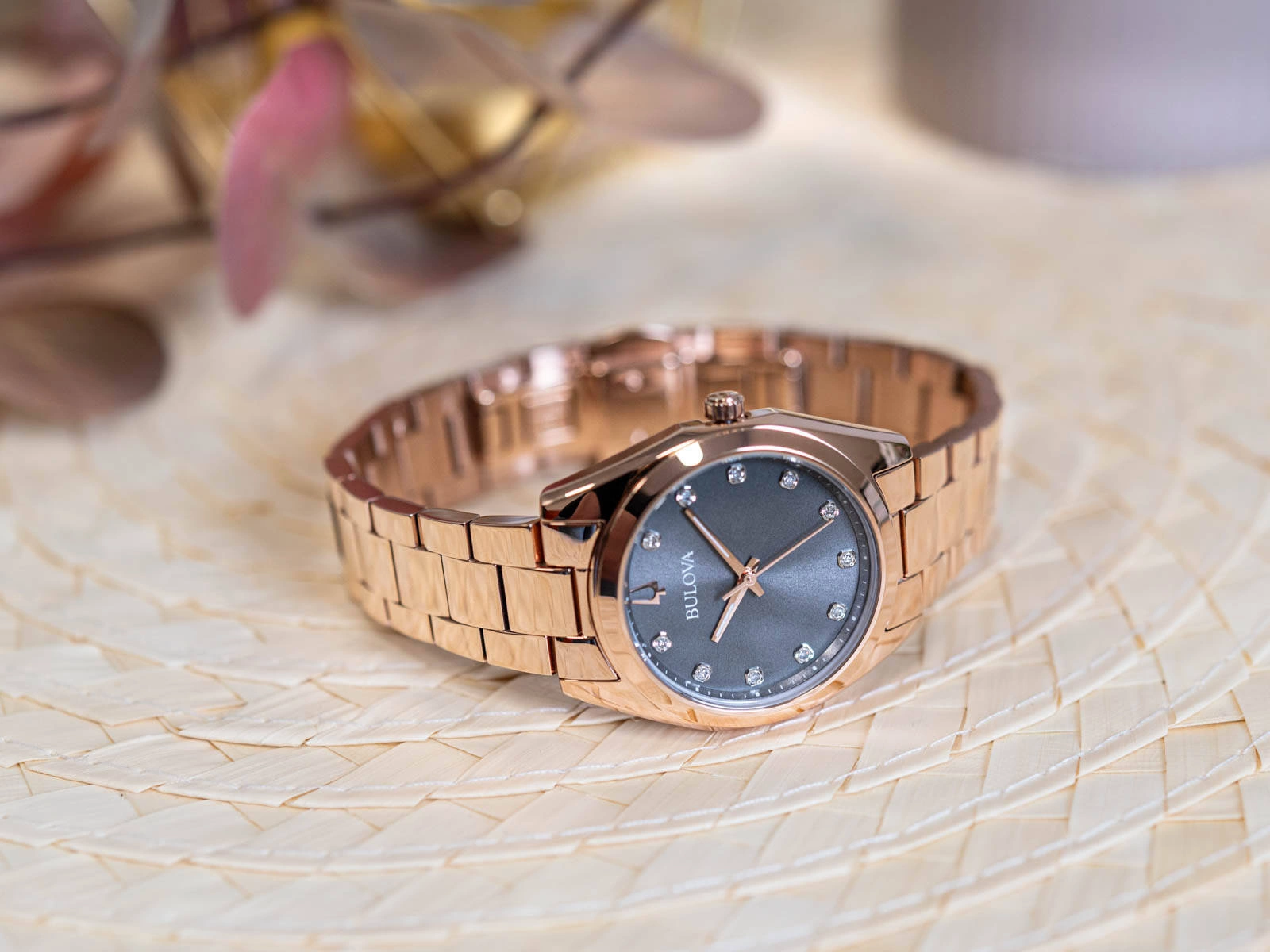 - Zegarek Damski Bulova 97P156 czerwone złoto na bransolecie.