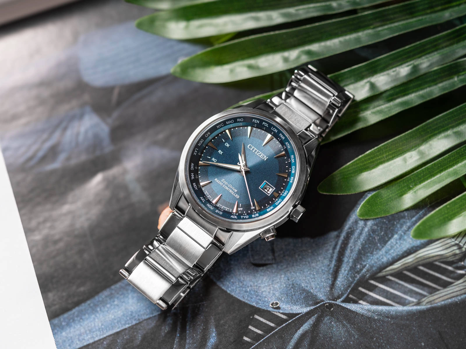 Citizen CB0270-87L mimo niepozornego wyglądu, model ten wyposażony jest Radio Controlled, tak więc po ustawieniu właściwej strefy czasowej, zegarek będzie odbierał sygnał i synchronizował czas z jednym z najbliżej położonych odbiorników. Na niebieskiej, gładkiej tarczy umieszczono system Eco-Drive, tak więc nie ma konieczności cyklicznej wymiany baterii, gdyż model ten ładuje się, mając kontakt ze słońcem i światłem sztucznym. Dla pasjonatów podróży, świetnie sprawdzi się funkcja czasu światowego, w łatwy sposób można sprawdzić aktualną godzinę w 26 miastach świata. Wskazówki są fosforyzowane, po naświetleniu świecą przez jakiś czas w ciemności. Wysoka klasa wodoszczelności 100M pozwala na pływanie z zegarkiem na ręce. Citizen CB0270-87L efektownie prezentuje się na nadgarstku, ze względu na minimalistyczny design, świetnie uzupełni biznesową stylizację. Sprawdzi się również jako dodatek na co dzień.