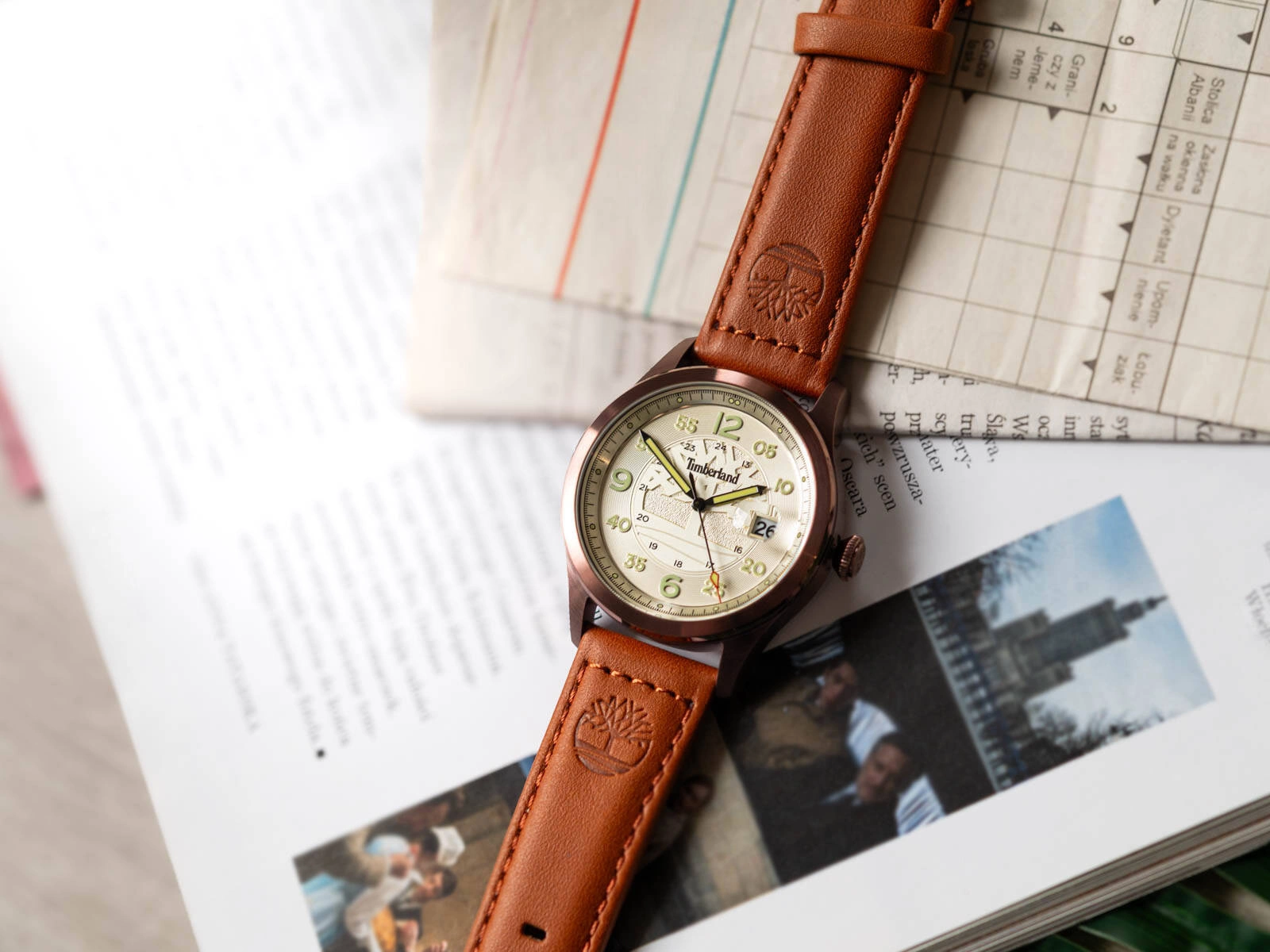 - Wodoszczelny Zegarek Męski Timberland TDWGB2237503 Cornwall brązowy na pasku. Posiada funkcje datownika i neobrite.