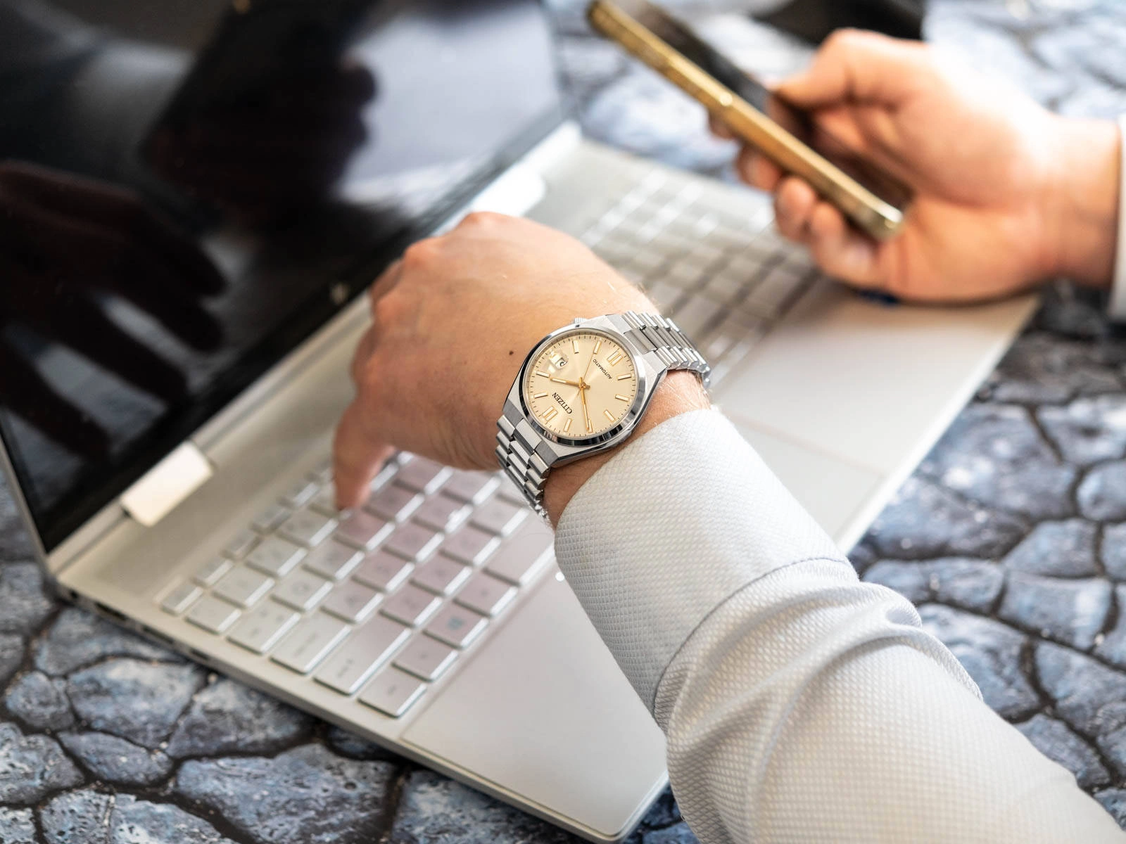 - wskazówki: złoto-białe