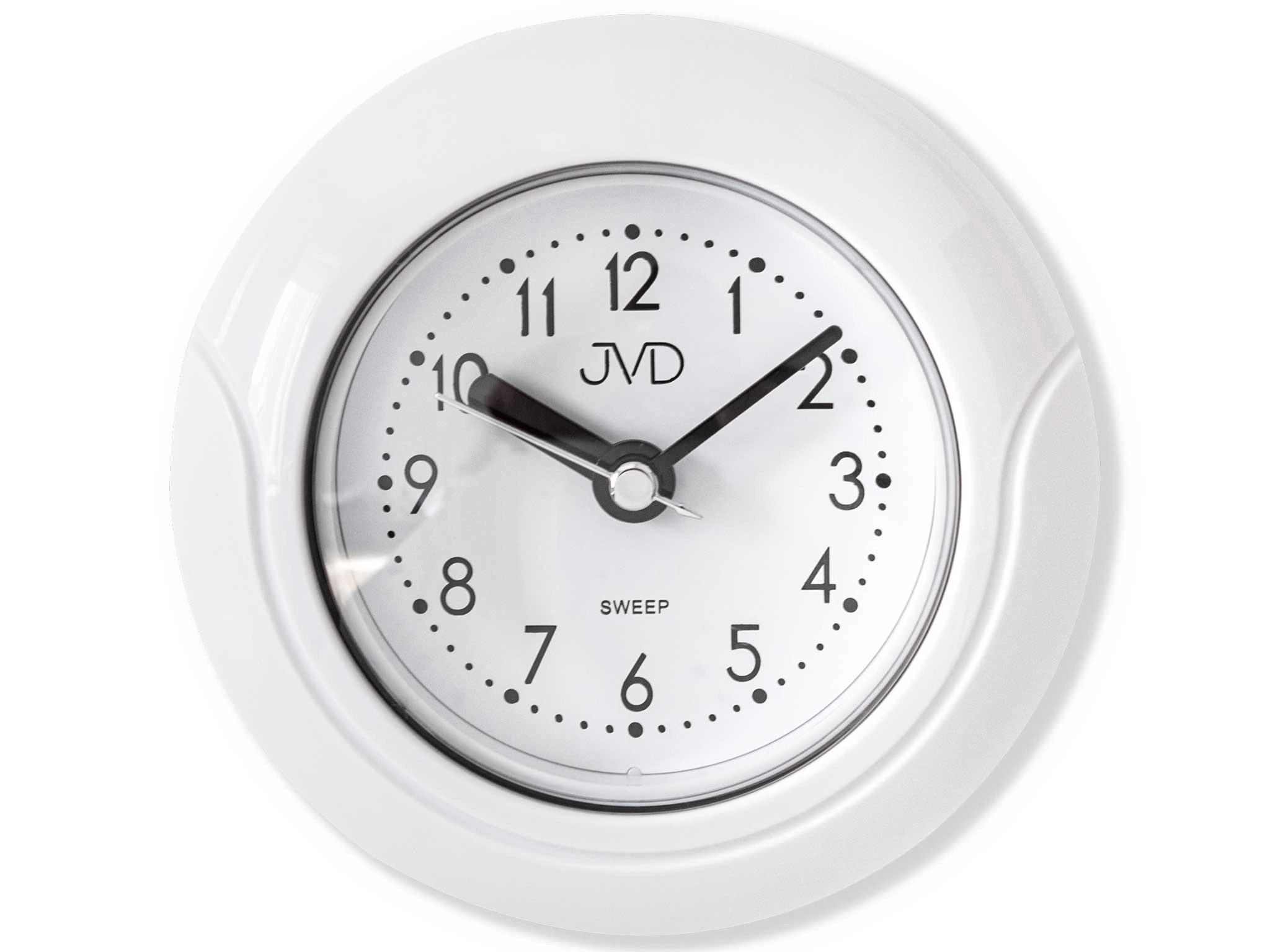 Zegar ścienny JVD SH33.1 to minimalistyczny model. Utrzymany w prostej czarno-białej kolorystyce jest bardzo uniwersalnym rozwiązaniem, które znakomicie wzbogaci aranżację wnętrza. Czasomierz posiada bardzo precyzyjny mechanizm kwarcowy. Na białej tarczy znajdują czytelne czarne cyfry arabskie. Uwagę zwraca również płynny ruch sekundnika. Dzięki oznaczeniu Water Proof sprawdzi się jako zegar łazienkowy. Model SH33.1 można powiesić na ścianie, postawić lub nawet zawiesić na dołączonym do zestawu sznurku. Do zegarka dołączona jest bateria gratis.