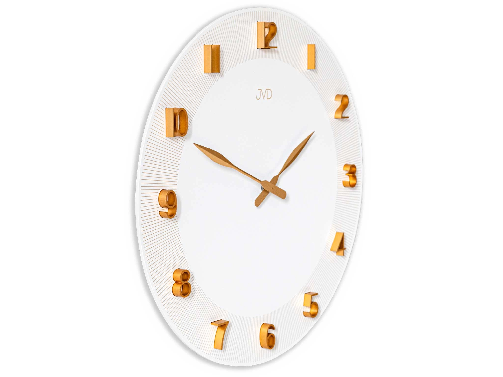 Zegar ścienny JVD HC501.1 to wykonany z drewna klasyczny zegar, który znakomicie wpasuje się w aranżację salonu lub biura. Na białej czytelnej tarczy znajdują się duże cyfry arabskie i złote wskazówki. Czasomierz posiada bardzo precyzyjny mechanizm kwarcowy. Do zegarka dołączona jest bateria gratis.