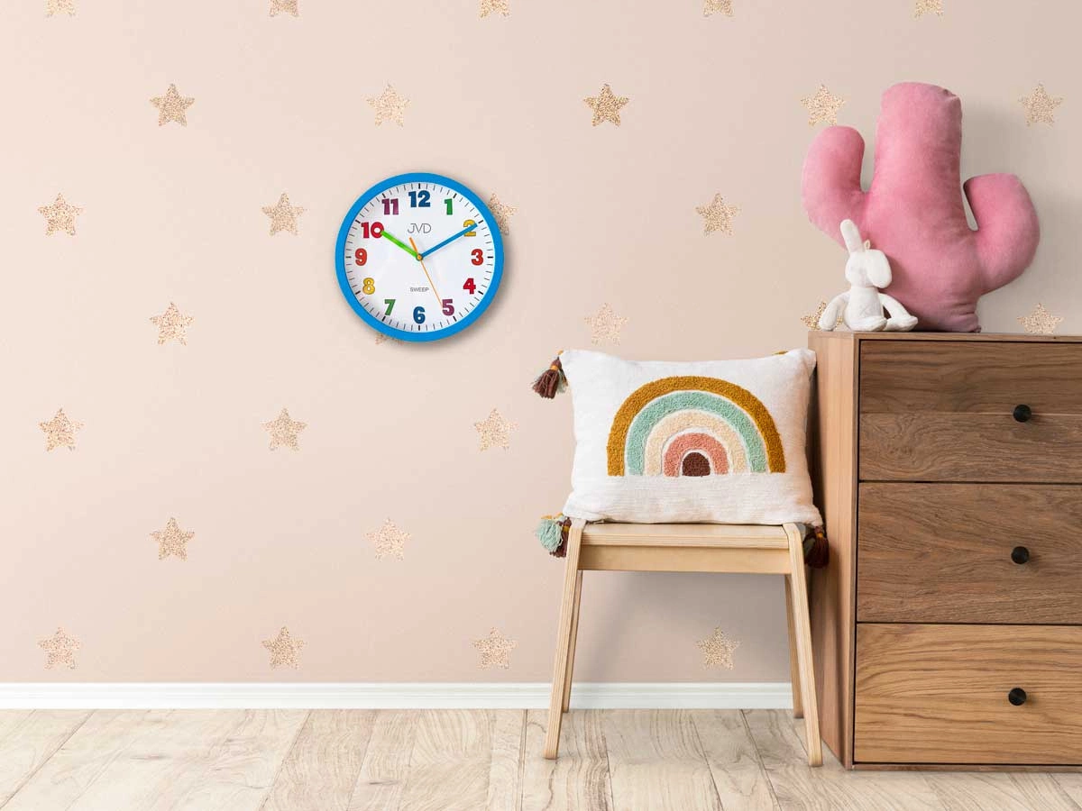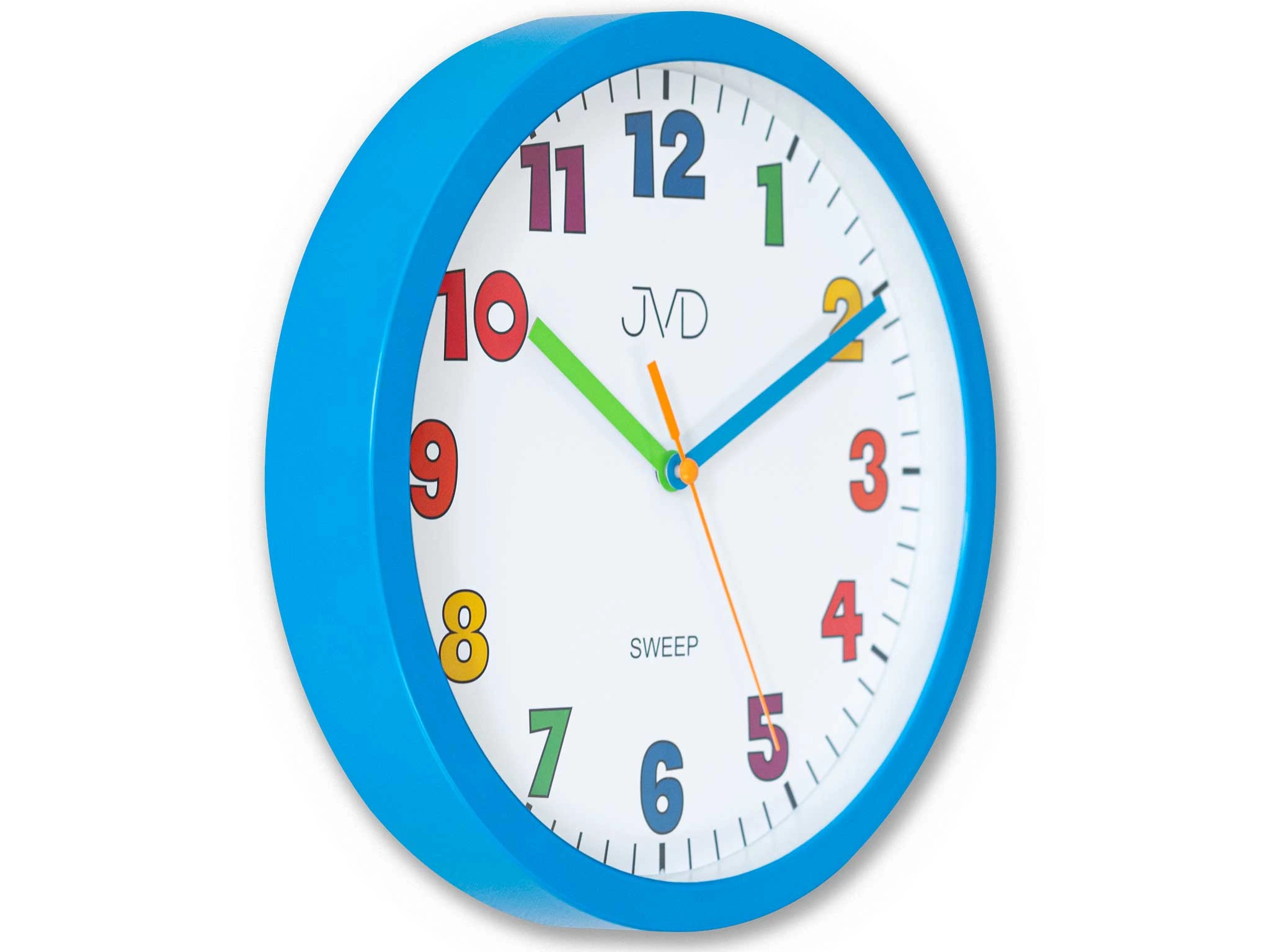Klasyczny analogowy zegar ścienny JVD HA46.1 to model dedykowany dla najmłodszych. Czasomierz pracuje na bazie cichego i precyzyjnego mechanizmu kwarcowego. Na czytelnej białej tarczy znajdują się kolorowe cyfry arabskie i kolorowe wskazówki z sekundnikiem pracującym w sposób płynny. JVD HA46.1 będzie wspaniałym kolorowym dodatkiem do pokoju dziecięcego i ułatwi naukę odczytywania godziny. Zasilanie stanowi bateria LR6 AA - dołączamy taką gratis.