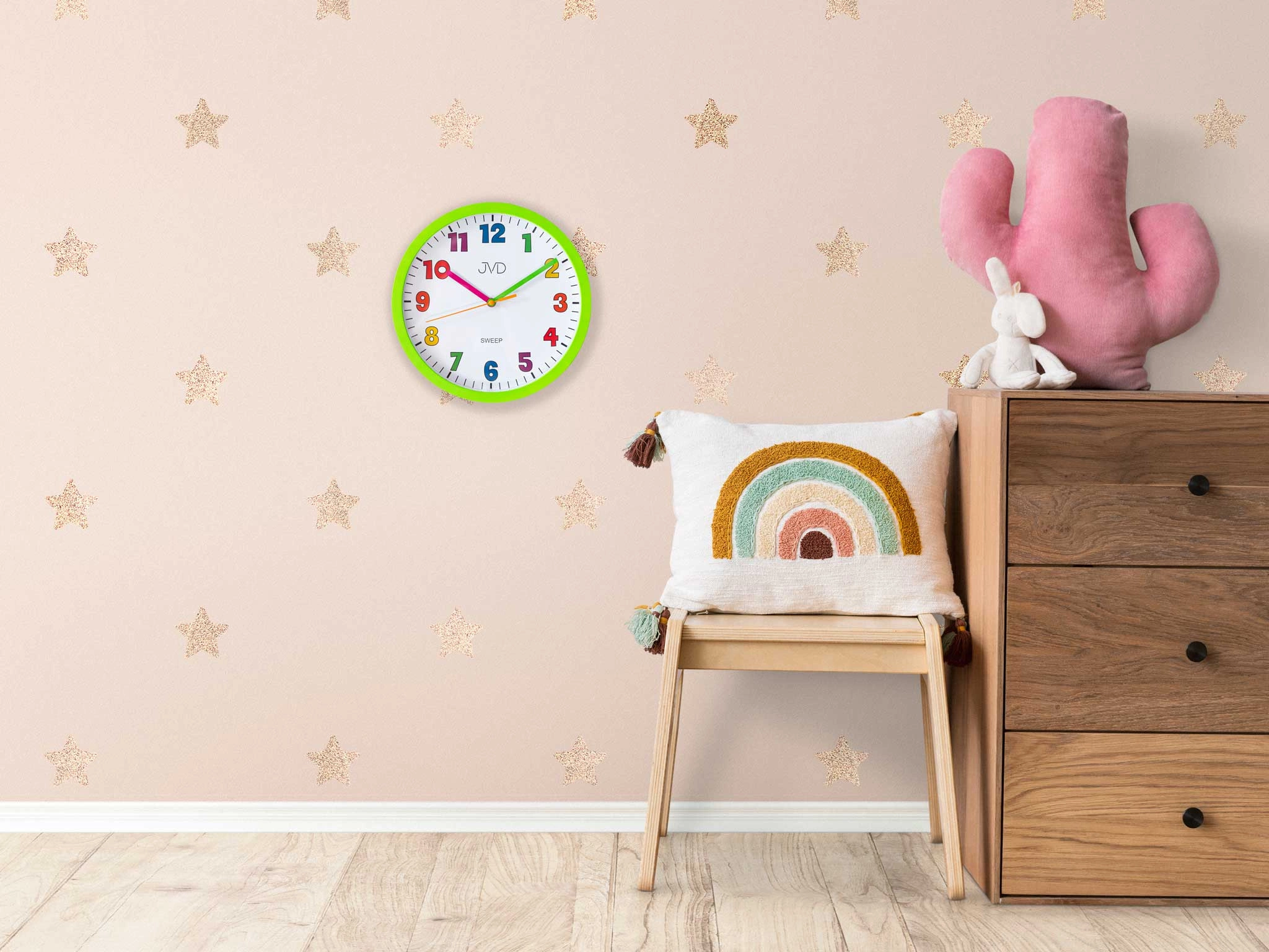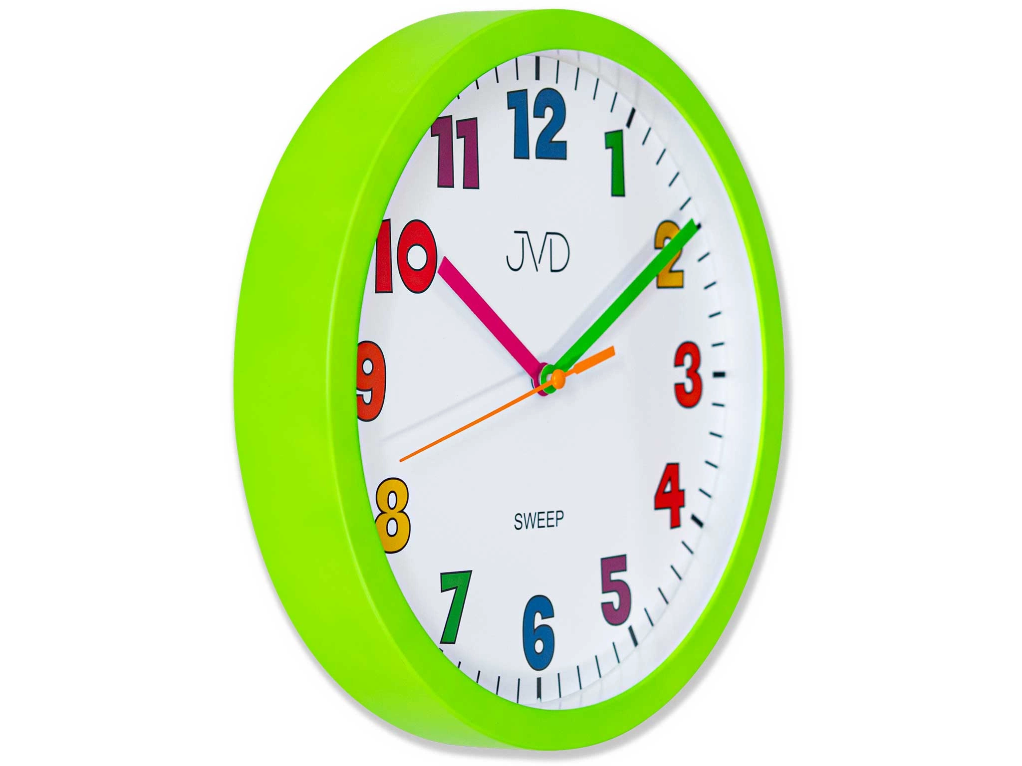 Zegar ścienny JVD HA46.4, utrzymany w klasycznym stylu analogowym, został stworzony z myślą o najmłodszych. Jego cichy i precyzyjny mechanizm kwarcowy zapewnia dokładność czasu, a biała tarcza z kolorowymi cyframi arabskimi i barwnymi wskazówkami, w tym płynnie działającym sekundnikiem, jest bardzo czytelna. JVD HA46.4 to idealny, kolorowy dodatek do dziecięcego pokoju, ułatwiający naukę odczytywania godzin. Zegar jest zasilany baterią LR6 AA, którą dołączamy bezpłatnie.