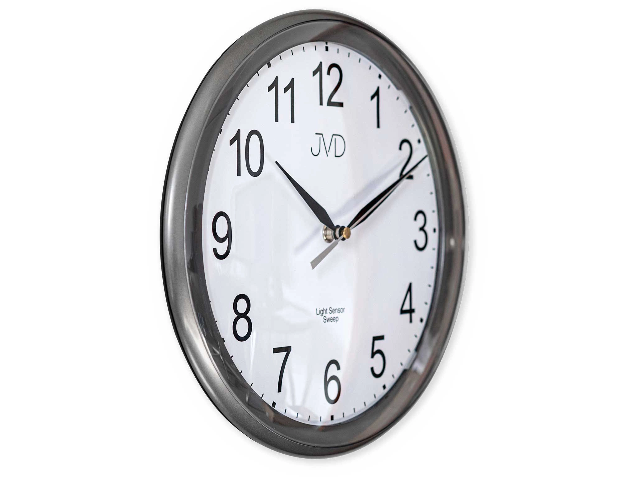 - Zegar ścienny JVD HP663.8 - Szary. Posiada funkcję podświetlenia.