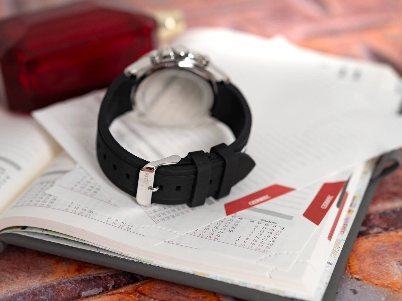 Hugo Boss Runner 1514141 to elegancki i wszechstronny zegarek, który idealnie wpisuje się w gust mężczyzn ceniących styl i funkcjonalność. Model ten zachwyca zarówno swoim wyglądem, jak i zaawansowanymi funkcjami, spełniając oczekiwania najbardziej wymagających użytkowników. Koperta zegarka jest wykonana z wysokiej jakości stali szlachetnej, co gwarantuje jej trwałość i odporność na uszkodzenia. Srebrny kolor koperty nadaje zegarkowi nowoczesny i elegancki wygląd. Zegarek wyposażono w obrotowy bezel, który dodaje mu sportowego charakteru i pozwala na precyzyjne odmierzanie czasu. Koperta zawieszona jest na wygodnym, elastycznym pasku wykonanym z czarnego tworzywa sztucznego, co zapewnia komfort noszenia przez cały dzień. Czarna tarcza zegarka jest doskonale czytelna dzięki kontrastującym biało-srebrnym indeksom i wskazówkom. Wskazówki oraz indeksy zostały pokryte neobrite, fosforyzującym materiałem, który po naświetleniu emituje światło, umożliwiając odczyt godziny w ciemności. Tarcza chroniona jest płaskim szkiełkiem mineralnym, odpornym na zarysowania, co dodatkowo zwiększa trwałość zegarka. Hugo Boss Runner 1514141 to nie tylko piękny wygląd, ale również praktyczność. Przy godzinie szóstej znajduje się okienko datownika, wskazujące aktualny dzień miesiąca. Na tarczy znajdują się subtarcze – jedna pokazuje czas w formacie 24-godzinnym, a dwie pozostałe pełnią funkcję stopera analogowego, pozwalającego na precyzyjne odmierzanie czasu do 30 minut. Zegarek Hugo Boss Runner 1514141 to nie tylko funkcjonalność, ale także doskonały pomysł na prezent. Eleganckie czarne opakowanie podkreśla jego ekskluzywny charakter, idealnie nadając się na podarunek na specjalne okazje.