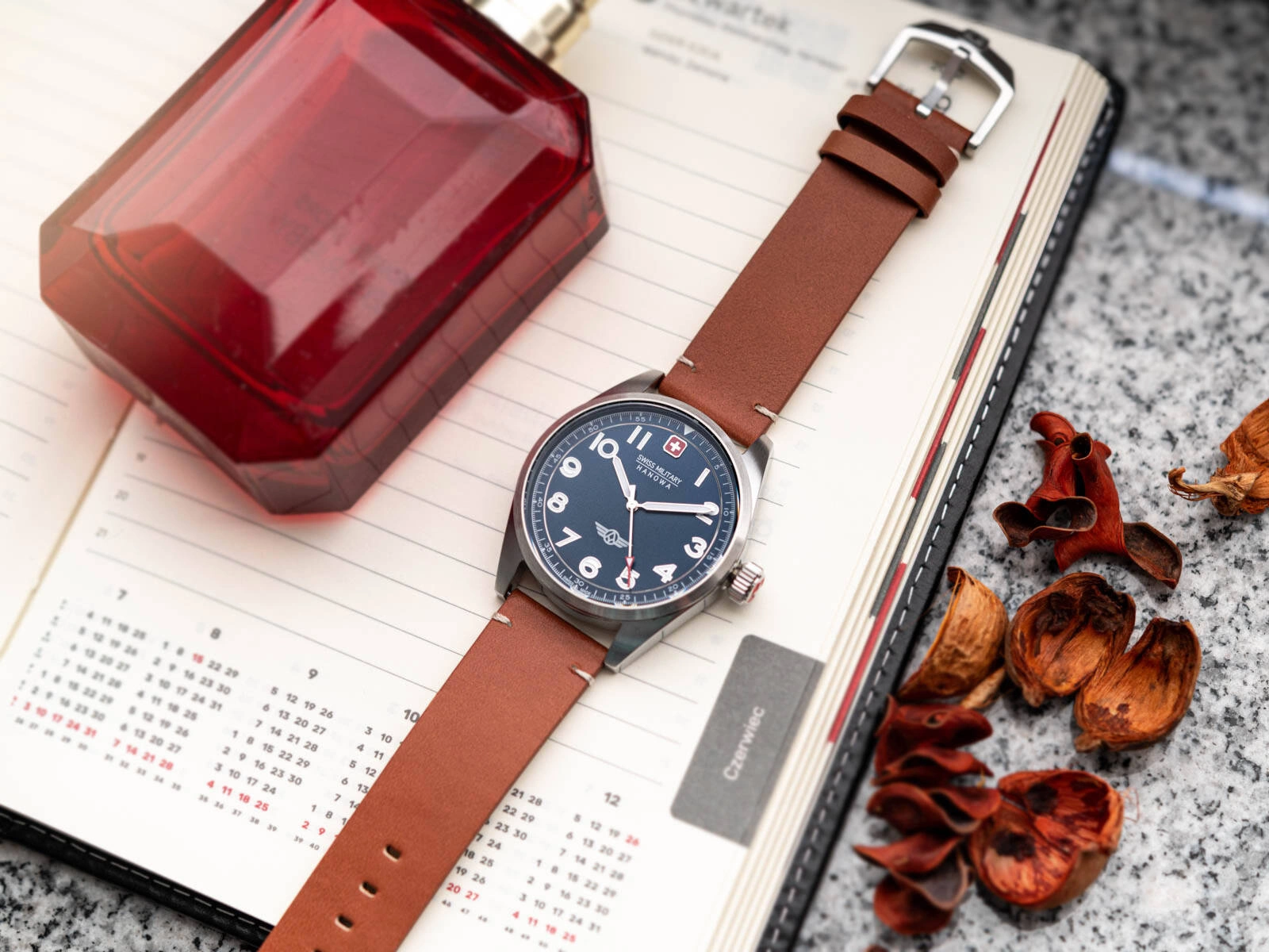 - Wodoszczelny Zegarek Męski Swiss Military Hanowa SMWGA2100402 brązowy na pasku. Posiada funkcję neobrite.