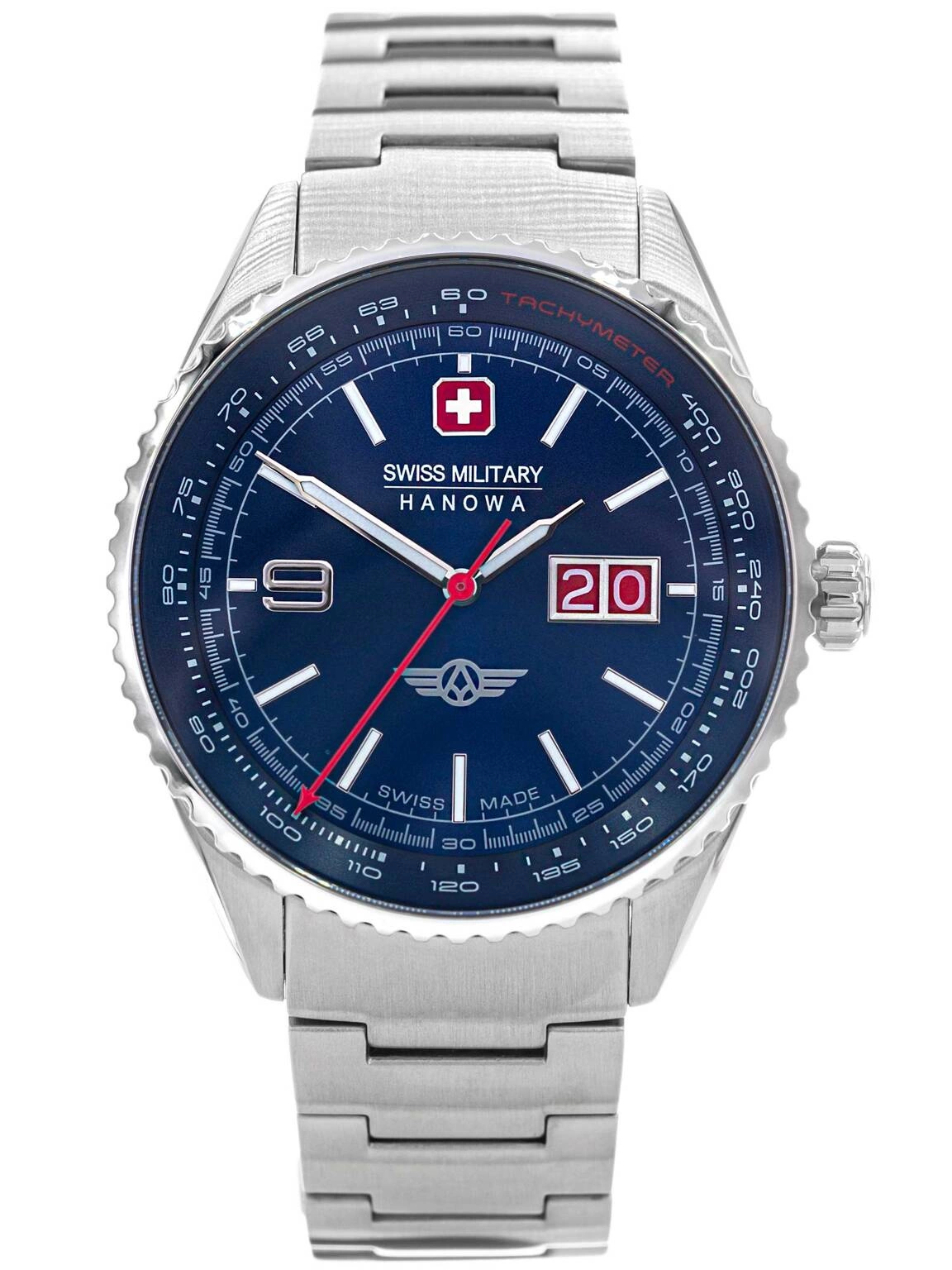 - Wodoszczelny Zegarek Męski Swiss Military Hanowa SMWGH2101005 srebrny na bransolecie. Posiada funkcje datownika i neobrite.