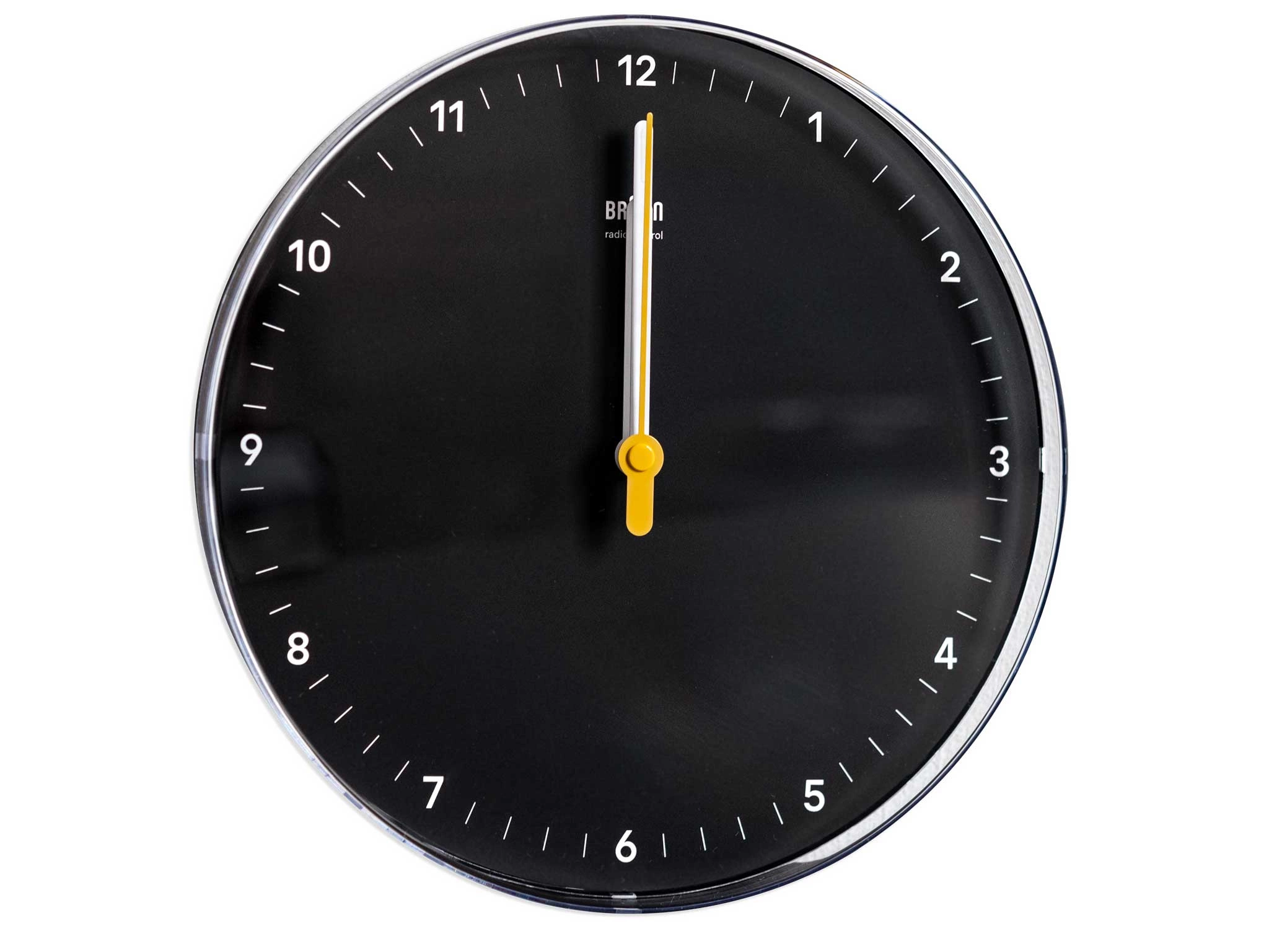 Zegar ścienny Braun BC26B-DCF jest ucieleśnieniem filozofii firmy Braun „mniej, ale lepiej”. Model BC26 od tego niemieckiego producenta z czarną tarczą oraz obudową, wyróżnia się prostotą i funkcjonalnością, a dzięki swojemu minimalistycznemu wizerunkowi pasuje do wielu aranżacji, będąc przy tym bardzo czytelnym. Czasomierz posiada bardzo precyzyjny oraz cichy mechanizm kwarcowy. Dla lepszej czytelności końcówki wskazówek wyposażono w fosforyzujące elementy neobrite, które po naświetleniu świecą przez jakiś czas. Dzięki funkcji Radio control zegar zawsze będzie mógł ustawić sam odpowiednią godzinę - nadajnik znajduje się we Frankfurcie, a jego zasięg wynosi około 1500 km. Funkcję można wyłączyć i ustawiać zegarek ręcznie. Do zegarka dołączona jest bateria gratis.