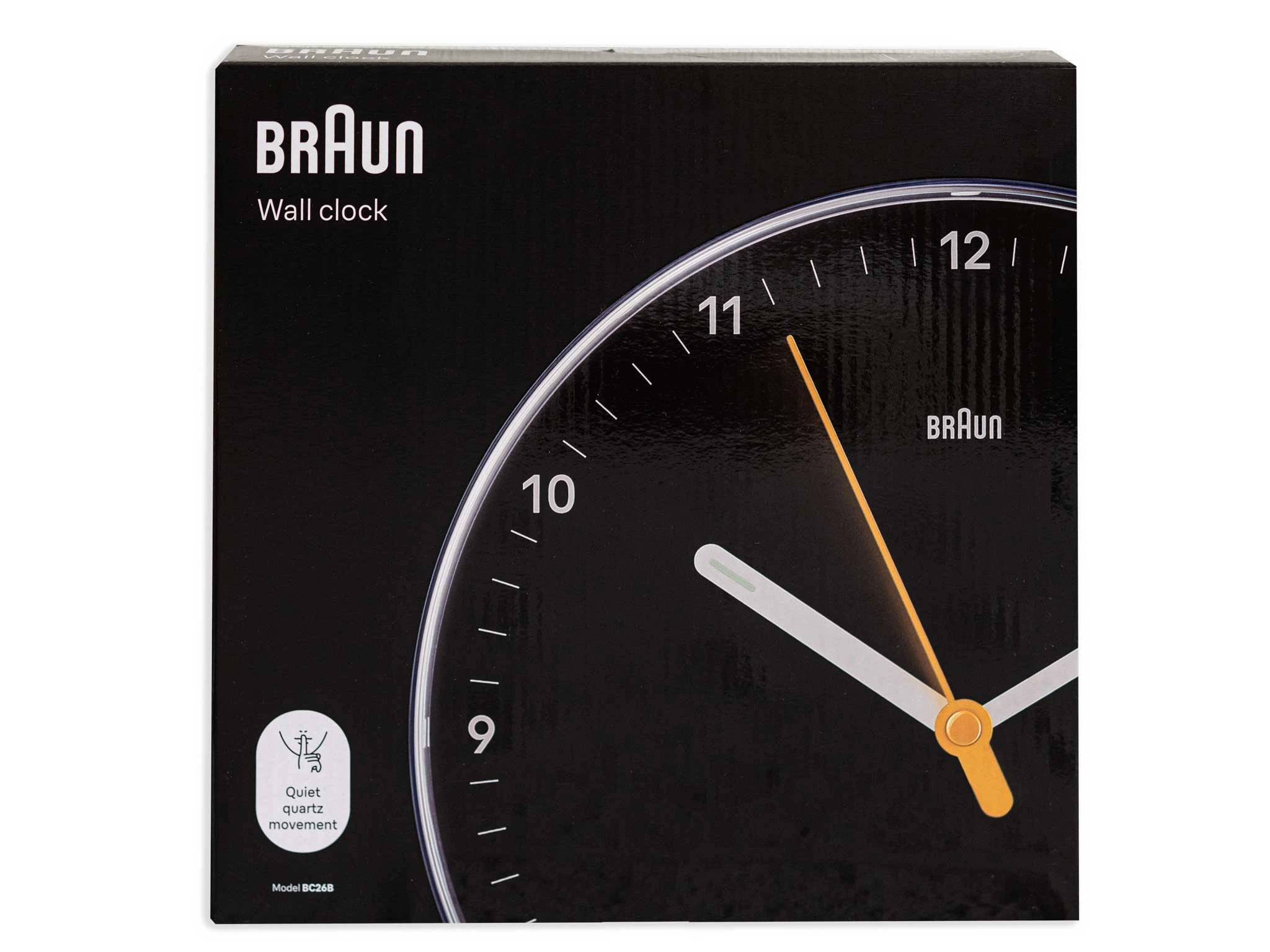 Zegar ścienny Braun BC26B jest ucieleśnieniem filozofii firmy Braun „mniej, ale lepiej”. Model BC26 od tego niemieckiego producenta z czarną tarczą oraz obudową, wyróżnia się prostotą i funkcjonalnością, a dzięki swojemu minimalistycznemu wizerunkowi pasuje do wielu aranżacji, będąc przy tym bardzo czytelnym. Czasomierz posiada bardzo precyzyjny oraz cichy mechanizm kwarcowy. Dla lepszej czytelności końcówki wskazówek wyposażono w fosforyzujące elementy neobrite, które po naświetleniu świecą przez jakiś czas. Do zegarka dołączona jest bateria gratis.