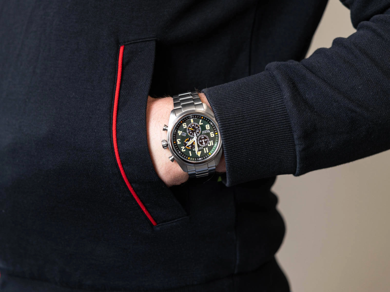 Zegarek Citizen AT2480-81X Military to połączenie zaawansowanej technologii, japońskiej precyzji i wyjątkowego designu, które zadowoli nawet najbardziej wymagających użytkowników. Jego koperta oraz bransoleta wykonane są z lekkiego i wytrzymałego tytanu, co czyni ten model wyjątkowo wygodnym w codziennym użytkowaniu. Tytan, będący o 40% lżejszy od stali nierdzewnej, gwarantuje komfort noszenia, a jednocześnie charakteryzuje się niezwykłą odpornością na uszkodzenia i zarysowania, dzięki czemu zegarek wygląda jak nowy nawet po długotrwałym użytkowaniu. Dodatkowo, tytan wykazuje wysoką odporność na korozję, co sprawia, że zegarek jest idealnym wyborem dla osób aktywnych, które często przebywają w trudnych warunkach, takich jak kontakt ze słoną wodą czy wilgotne środowisko. Dzięki hipoalergicznym właściwościom tytanu, zegarek jest również bezpieczny dla osób z wrażliwą skórą, eliminując ryzyko podrażnień i alergii. Stylowy design Citizen AT2480-81X Military podkreślają delikatne szczotkowane wykończenie koperty oraz nowoczesna, matowa zielona tarcza. Na tarczy znajduje się datownik wskazujący dzień miesiąca oraz tarcza zegara 24-godzinnego, co dodaje zegarkowi funkcjonalności i umożliwia szybki odczyt godziny. Wskazówki i indeksy wyposażone zostały w fosforyzujące elementy neobrite, które po naświetleniu świeca przez jakiś czas. Całość chroniona jest szkłem szafirowym, które jest jednym z najtwardszych materiałów stosowanych w zegarmistrzostwie, zapewniając doskonałą odporność na zarysowania. Model ten wyposażony jest w innowacyjny system Eco-Drive, który pozwala na ładowanie zegarka poprzez kontakt ze światłem słonecznym oraz sztucznym, eliminując tym samym konieczność cyklicznej wymiany baterii. To ekologiczne rozwiązanie jest nie tylko wygodne, ale również przyjazne dla środowiska, co z pewnością docenią osoby dbające o ekologię. Klasa wodoszczelności 10BAR pozwala na pływanie z zegarkiem na ręce. Citizen AT2480-81X Military to idealny dodatek do casualowej, męskiej stylizacji, który łączy w sobie elegancję z funkcjonalnością. Niewielka waga zegarka sprawia, że jest on prawie nie zauważalny w codziennym użytkowaniu, a eleganckie pudełko dołączone do zestawu sprawia, że może stanowić doskonały prezent na specjalne okazje.