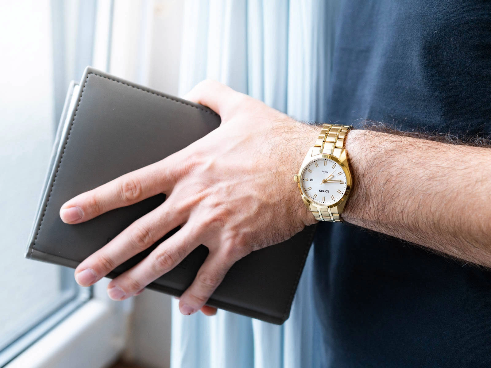 Lorus RH982PX9 to męski zegarek o klasycznym designie od renomowanego japońskiego producenta. Serce tego czasomierza to precyzyjny mechanizm kwarcowy, zasilany baterią, co gwarantuje niezawodność i dokładność. Model ten został zaprojektowany z myślą o elegancji, co podkreśla jego złoty kolor oraz wykonanie z wysokiej jakości stali szlachetnej. Kontrastująca srebrna tarcza, ozdobiona złotymi indeksami i klasycznymi wskazówkami, zapewnia doskonałą czytelność. Wyposażone w fosforyzowane elementy neobrite wskazówki będą po naświetleniu świecić w ciemności przez jakiś czas, ułatwiając odczytanie wskazań zegarka. Funkcja datownika ułatwia szybkie odczytanie aktualnego dnia miesiąca, czyniąc ten model stylowym i praktycznym dodatkiem. Całość zabezpiecza płaskie szkiełko mineralne. Smukła konstrukcja koperty zapewnia komfort noszenia oraz doskonałe dopasowanie pod rękawem koszuli. Lorus RH982PX9 jest idealnym wyborem jako zegarek do garnituru, ale świetnie pasuje również do casualowych stylizacji. Zapakowany w eleganckie i oryginalne pudełko stanowi wyjątkowy pomysł na prezent.