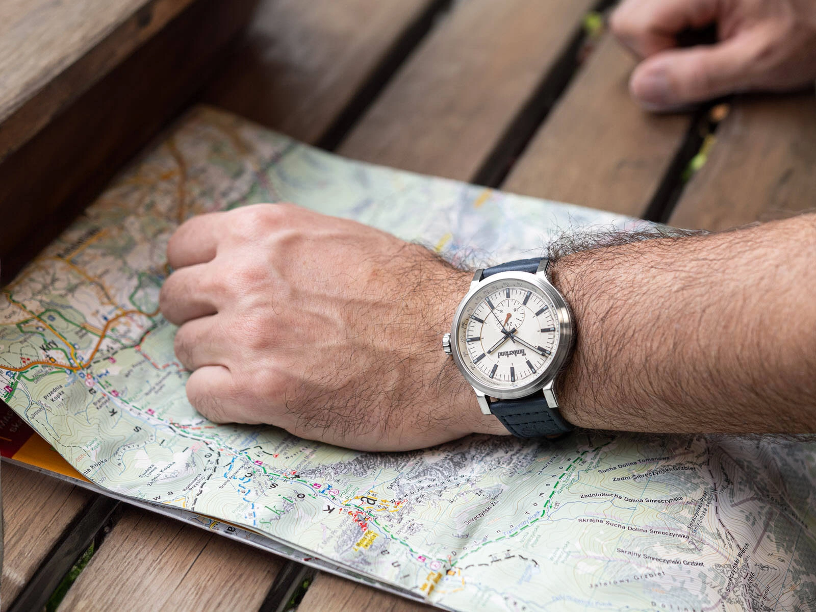 Model Timberland TDWGF2231005 Driscoll to wyjątkowy czasomierz, który łączy w sobie elegancki minimalizm i maksymalną funkcjonalność. Jego nowoczesny design skupia się na prostocie i czytelności, co czyni go idealnym wyborem zarówno na co dzień, jak i na bardziej formalne okazje. W sercu zegarka znajduje się precyzyjny mechanizm kwarcowy, zasilany baterią, który zapewnia niezawodność i dokładność. Całość została zamknięta w eleganckiej kopercie, wykonanej z najwyższej jakości stali szlachetnej o srebrnym wykończeniu, co nadaje mu nowoczesny i stylowy wygląd. Beżowa tarcza zegarka jest subtelnym, ale jednocześnie niezwykle efektownym tłem dla wyraźnych, czarnych indeksów liniowych oraz wskazówek. Dla poprawienia czytelności wskazówki wyposażono w białe akcenty, co ułatwia szybkie i intuicyjne odczytanie godziny. Dodatkowym udogodnieniem jest zastosowanie powłoki neobrite na indeksach i wskazówkach – po naświetleniu świecą one przez pewien czas, co znacznie ułatwia korzystanie z zegarka w słabszych warunkach oświetleniowych. Model ten oferuje także funkcjonalną komplikację w postaci małej tarczy 24-godzinnej, która pozwala na wygodne monitorowanie czasu w formacie dobowym. Tarczę chroni płaskie szkło mineralne, które charakteryzuje się wysoką wytrzymałością na zarysowania i uszkodzenia. Całości dopełnia granatowy pasek wykonany z naturalnej skóry pozyskiwanej w sposób ekologiczny, co wpisuje się w proekologiczne wartości marki Timberland. Pasek zapinany jest na tradycyjną sprzączkę, co zapewnia komfort użytkowania i solidność konstrukcji. Zegarek Timberland TDWGF2231005 Driscoll jest pakowany w eleganckie, oryginalne pudełko producenta, które doskonale nadaje się na prezent, podkreślając wyjątkowy charakter tego modelu.