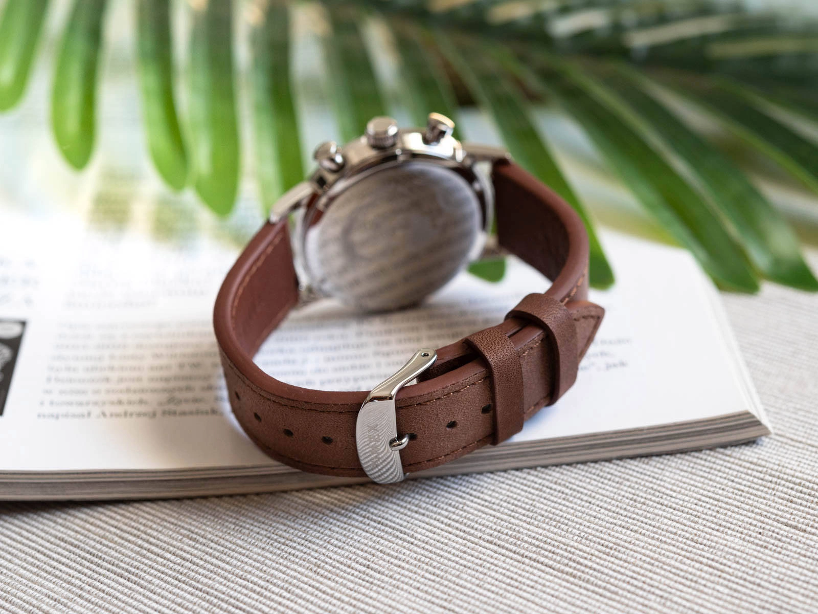 - Zegarek Męski Timex TW2W10200 brązowy na pasku, posiada funkcje takie jak stoper i datownik.