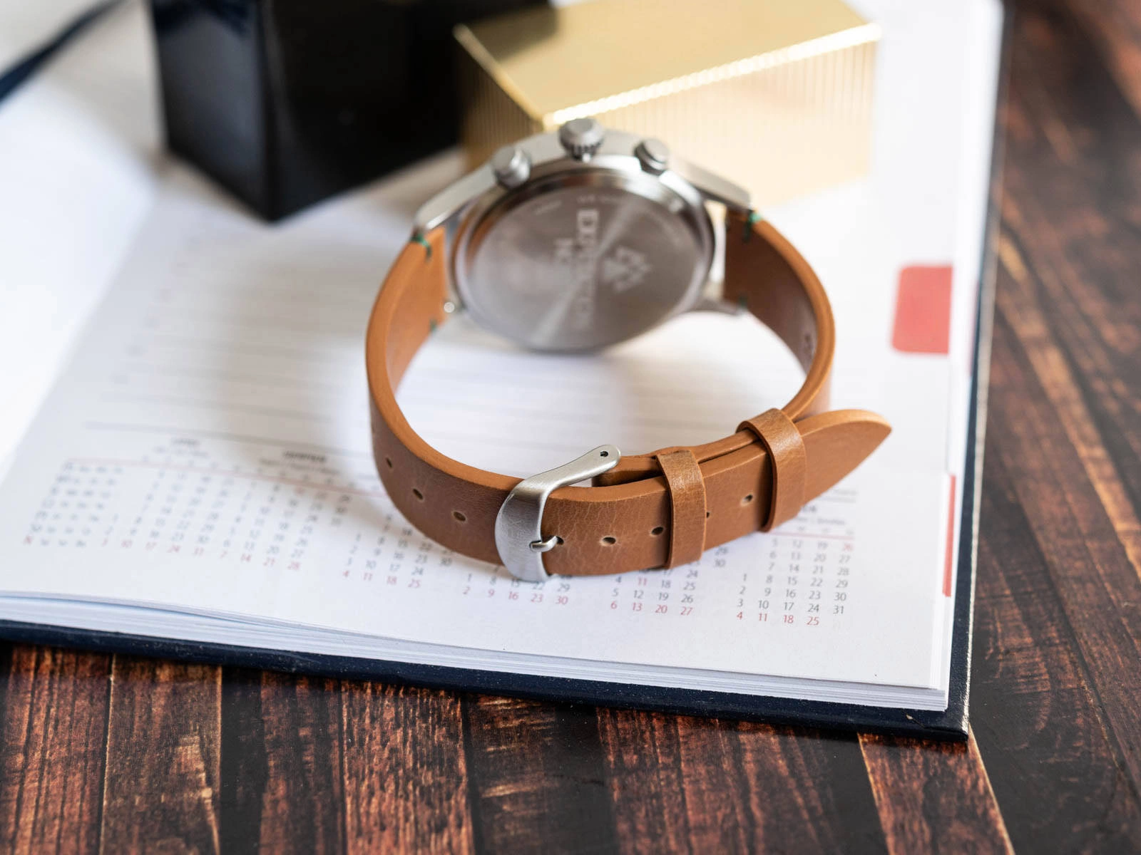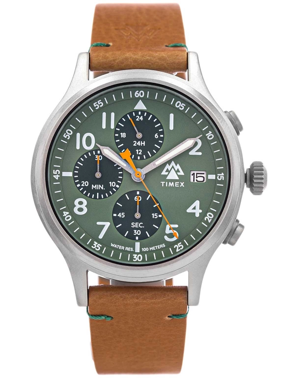 Timex TW2W16400 Expedition North Sierra Chrono to elegancki, a zarazem funkcjonalny zegarek męski, który harmonijnie łączy klasyczny design z nowoczesnymi rozwiązaniami. Model ten pochodzi z kolekcji Expedition North, stworzonej specjalnie dla osób gotowych stawić czoła najtrudniejszym wyzwaniom, zarówno w codziennym życiu, jak i podczas ekstremalnych wypraw. Zegarki z tej serii cechują się nie tylko wysoką wytrzymałością, ale również estetyką, która sprawia, że są doskonałym wyborem dla mężczyzn ceniących zarówno styl, jak i praktyczność. Wykonana z solidnego metalu srebrna koperta skrywa precyzyjny mechanizm kwarcowy zasilany baterią, który zapewnia dokładność wskazań. Tylna część koperty, wykonana ze stali szlachetnej, dodatkowo chroni mechanizm przed uszkodzeniami. Czasomierz ten osadzono na wygodnym jasnobrązowym pasku wykonanym z wysokiej jakości skóry ekologicznej, który zakończono klasyczną sprzączką z igłą. Pasek zapewnia komfort noszenia zarówno w codziennych sytuacjach, jak i podczas długich podróży. Na przejrzystej jasnozielonej tarczy umieszczono białe cyfry arabskie, które wyznaczają godziny, gwarantując łatwy odczyt. Dyskretne logo producenta dodaje subtelnego akcentu, nie zaburzając przy tym czytelności tarczy. Na godzinie trzeciej znajduje się praktyczny dodatek w postaci okienka datownika, które pozwala na szybki podgląd aktualnego dnia miesiąca. Zegarek wyposażono również w trzy mniejsze, ciemnozielone tarcze, które odpowiadają za funkcję stopera analogowego, pozwalając na precyzyjny pomiar czasu, oraz za zegar wskazujący czas w formacie 24-godzinnym, co dodatkowo zwiększa jego funkcjonalność. W trosce o komfort użytkowania w trudniejszych warunkach, wskazówki zegarka pokryto fosforyzującą powłoką neobrite, która po naświetleniu świeci w ciemności, ułatwiając odczyt godziny w nocy lub przy słabym oświetleniu. Cyferblat zabezpiecza płaskie szkiełko mineralne. Timex TW2W16400 Expedition North Sierra Chrono posiada klasę wodoszczelności 100 metrów, co oznacza, że można w nim pływać i nie obawiać się kontaktu z wodą, co czyni go idealnym kompanem zarówno podczas wypraw, jak i codziennych aktywności. Zegarek dostarczany jest w oryginalnym opakowaniu Timex, które doskonale sprawdzi się także jako opakowanie na prezent, czyniąc go doskonałym wyborem na wyjątkowy upominek dla bliskiej osoby.