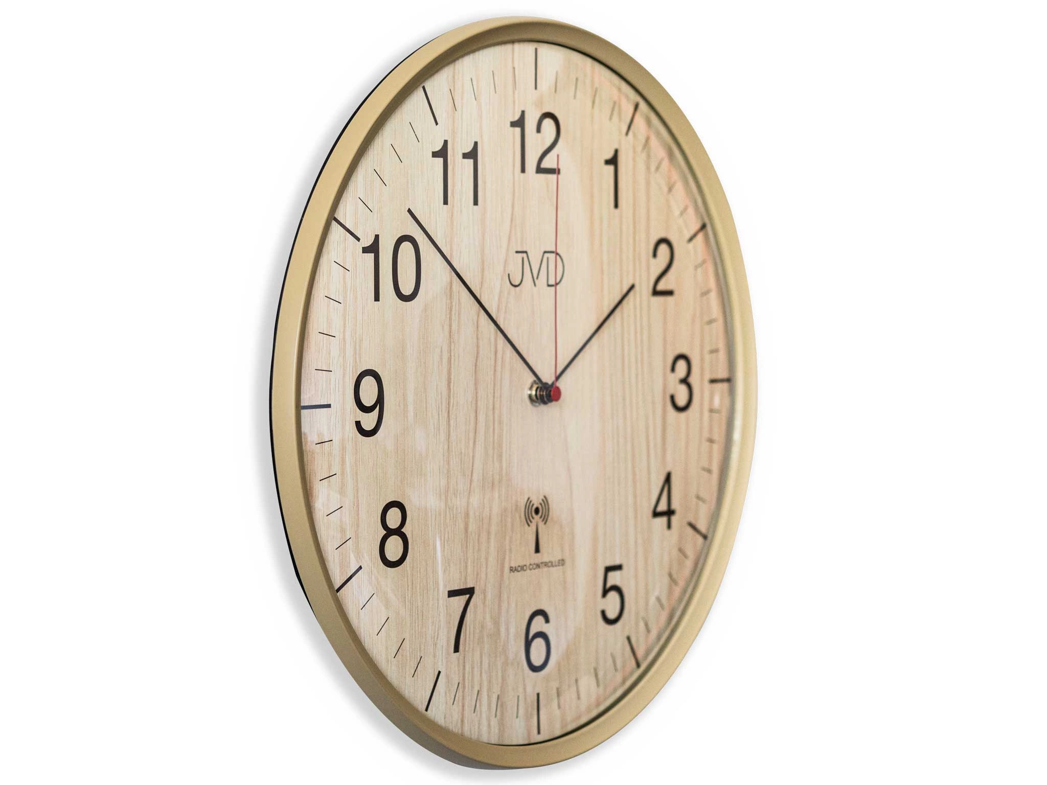 Zegar ścienny JVD RH17.2 to sterowany radiowo model o minimalistycznym designie. Utrzymany w beżowej kolorystyce jest ciepłym akcentem, które znakomicie wzbogaci aranżację wnętrza. Imitująca drewno tarcza stanowi doskonałe tło dla dobrze kontrastujących czarnych cyfr arabskich. Czasomierz posiada bardzo precyzyjny mechanizm kwarcowy. Dzięki funkcji Radio control zegar będzie mógł ustawić sam odpowiednią godzinę. Do zegarka dołączona jest bateria gratis.