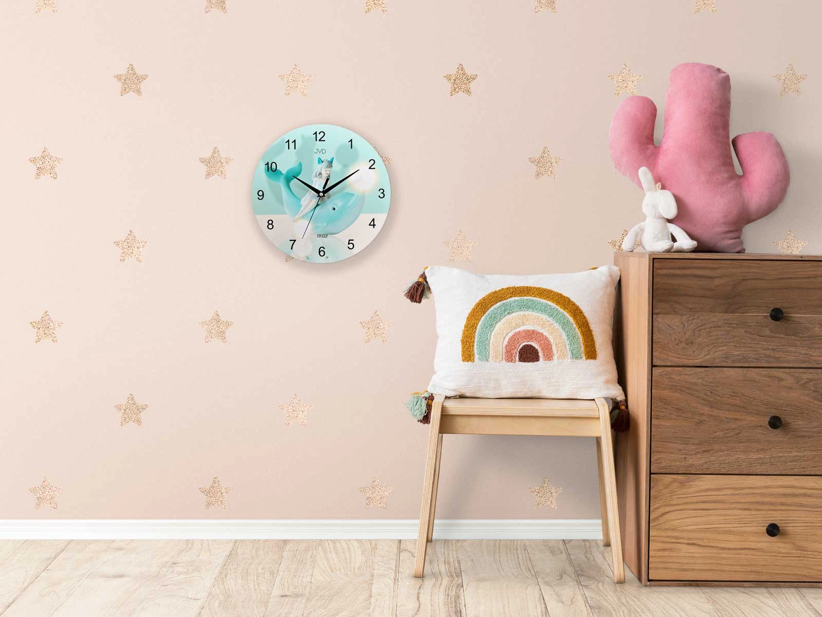 - Zegar ścienny dziecięcy JVD HJ108 - Niebieski z grafiką.