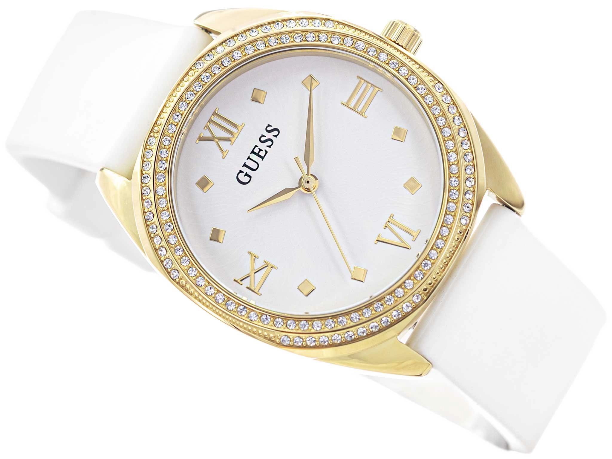 • Zegarek Damski Guess GW0691L2 biały na pasku z dodatkowym paskiem w zestawie.