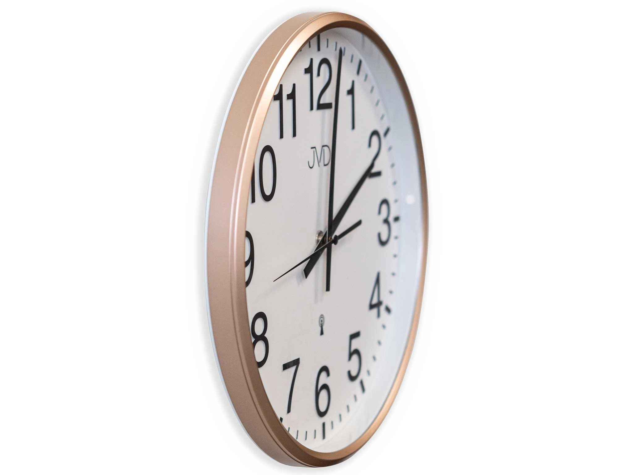 Zegar ścienny JVD RH684.5 wyróżnia minimalistyczna elegancja i funkcjonalność. Utrzymany w prostej różowo-białej kolorystyce jest bardzo uniwersalnym rozwiązaniem, które znakomicie wzbogaci aranżację wnętrza. Czasomierz posiada bardzo precyzyjny mechanizm kwarcowy. Dzięki funkcji Radio control zegar będzie mógł ustawić sam odpowiednią godzinę. Model wyposażono w czytelna białą tarczę z dobrze kontrastującymi czarnymi cyframi arabskimi. Do zegarka dołączona jest bateria gratis.