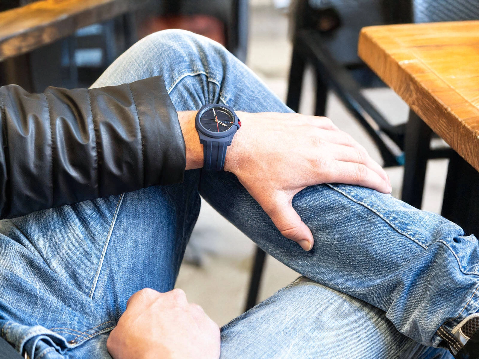 Tommy Hilfiger AUSTIN 1710595 to cechujący się minimalistycznym sportowym designem męski zegarek. Wykonana z tworzywa sztucznego koperta skrywa w sobie zasilany bateria mechanizm kwarcowy, który zabezpiecza zakręcany dekielek ze stali szlachetnej. Wykonany z tworzywa sztucznego pasek w kolorze granatowym jest integralna częścią obudowy. Pasek jest zapinany na klasyczną sprzączkę z igłą z zakresem regulacji w obrębie dostępnych dziurek. Godziny na ciemnej granatowej tarczy ozdobionej logo producenta wyznaczają wklęsłe indeksy liniowe. Tarcza stanowi doskonale kontrastujące tło dla srebrno-białych wskazówek wyposażonych w fosforyzujące elementy, które po naświetleniu będą świecić przez jakiś czas ułatwiając odczytanie wskazań czasomierza. Cyferblat zabezpiecza odporne na zarysowania płaskie szkiełko mineralne. Klasa wodoszczelności na poziomie 5 BAR oznacza, że zegarek jest odporny na deszcz lub przypadkowe zachlapanie. Tommy Hilfinger 1710595 AUSTIN został zapakowany w oryginalne opakowanie producenta, które sprawdzi się również jako opakowanie na prezent.