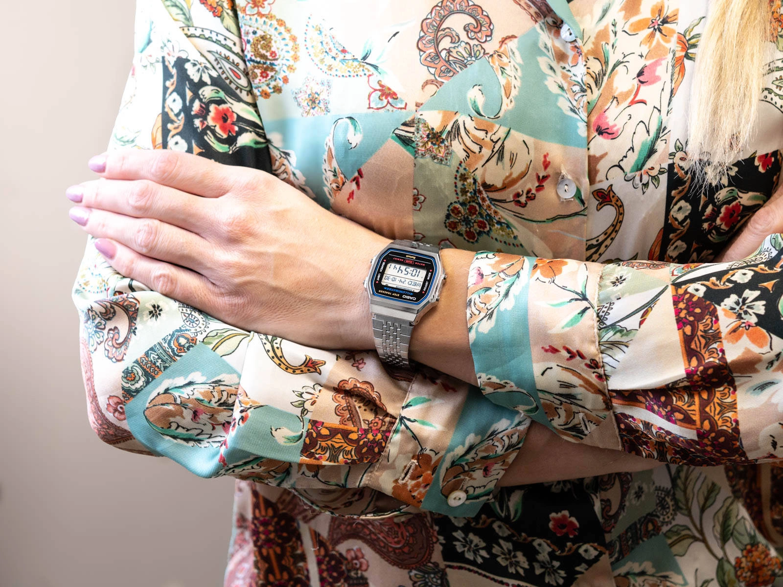 Casio ABL-100WE-1AEF to wszechstronny zegarek z linii Casio Vintage, który łączy klasyczny design retro z zaawansowanymi funkcjami technologicznymi. Seria Casio Vintage czerpie inspirację z ikonicznych modeli minionych dekad, oferując elegancki, ponadczasowy styl, który pozostaje na topie niezależnie od mody. Model ten wyróżnia się smukłą kopertą wykonaną z trwałego tworzywa sztucznego, kryjącą precyzyjny mechanizm kwarcowy zasilany baterią. Dzięki solidnej, wykonanej ze stali szlachetnej bransolecie o delikatnej plecionce i funkcji łatwej regulacji zapięcia G-Link, zegarek doskonale dopasowuje się do nadgarstka użytkownika, oferując komfort noszenia i elegancki wygląd. Czarno-srebrna kolorystyka podkreśla klasyczny charakter tego modelu, a akrylowe szkiełko chroni cyfrowy wyświetlacz przed uszkodzeniami. Oprócz klasycznego wyglądu ABL-100WE-1AEF oferuje szeroki wachlarz funkcji, które wyróżniają go na tle innych zegarków. Dzięki energooszczędnej technologii Bluetooth, użytkownik może sparować zegarek ze swoim smartfonem, co otwiera dostęp do licznych udogodnień, takich jak krokomierz czy alarmy. Wbudowany krokomierz pozwala monitorować dzienną aktywność fizyczną, co sprawia, że zegarek staje się nieocenionym narzędziem do dbania o zdrowie i kondycję. Alarm z możliwością ustawienia aż pięciu przypomnień dziennie oraz precyzyjny stoper i timer pozwalają na doskonałą organizację dnia. Automatyczny kalendarz zapewnia stałe wyświetlanie poprawnej daty, uwzględniając krótsze miesiące. Zegarek został wyposażony w pomarańczowe podświetlenie LED, które umożliwia łatwe odczytanie godziny nawet w ciemności. Czas trwania podświetlenia można dostosować do indywidualnych potrzeb – do wyboru są opcje 1,5 sekundy oraz 3 sekundy. Funkcja Mute pozwala wyłączyć dźwięki przycisków, co jest szczególnie przydatne w miejscach wymagających ciszy. Alarmy i sygnały timera pozostają jednak aktywne nawet po wyciszeniu dźwięków. Dzięki wskaźnikowi stanu baterii, użytkownik zawsze wie, kiedy należy wymienić baterię. Zaawansowana łączność Bluetooth umożliwia również konfigurację funkcji zegarka za pomocą aplikacji mobilnej, co znacząco ułatwia personalizację ustawień. Wbudowana funkcja Phone Finder pomaga odnaleźć zgubiony telefon, uruchamiając na nim alarm dźwiękowy po naciśnięciu przycisku na zegarku. Z kolei funkcja Time & Place zapisuje datę, czas i lokalizację na mapie, co może być przydatne jako dziennik podróży lub aktywności. Dla osób podróżujących zegarek oferuje również funkcję czasu światowego, pozwalającą sprawdzić godziny w różnych strefach czasowych, co jest idealnym rozwiązaniem dla osób często przemieszczających się między krajami lub współpracujących z partnerami na całym świecie.