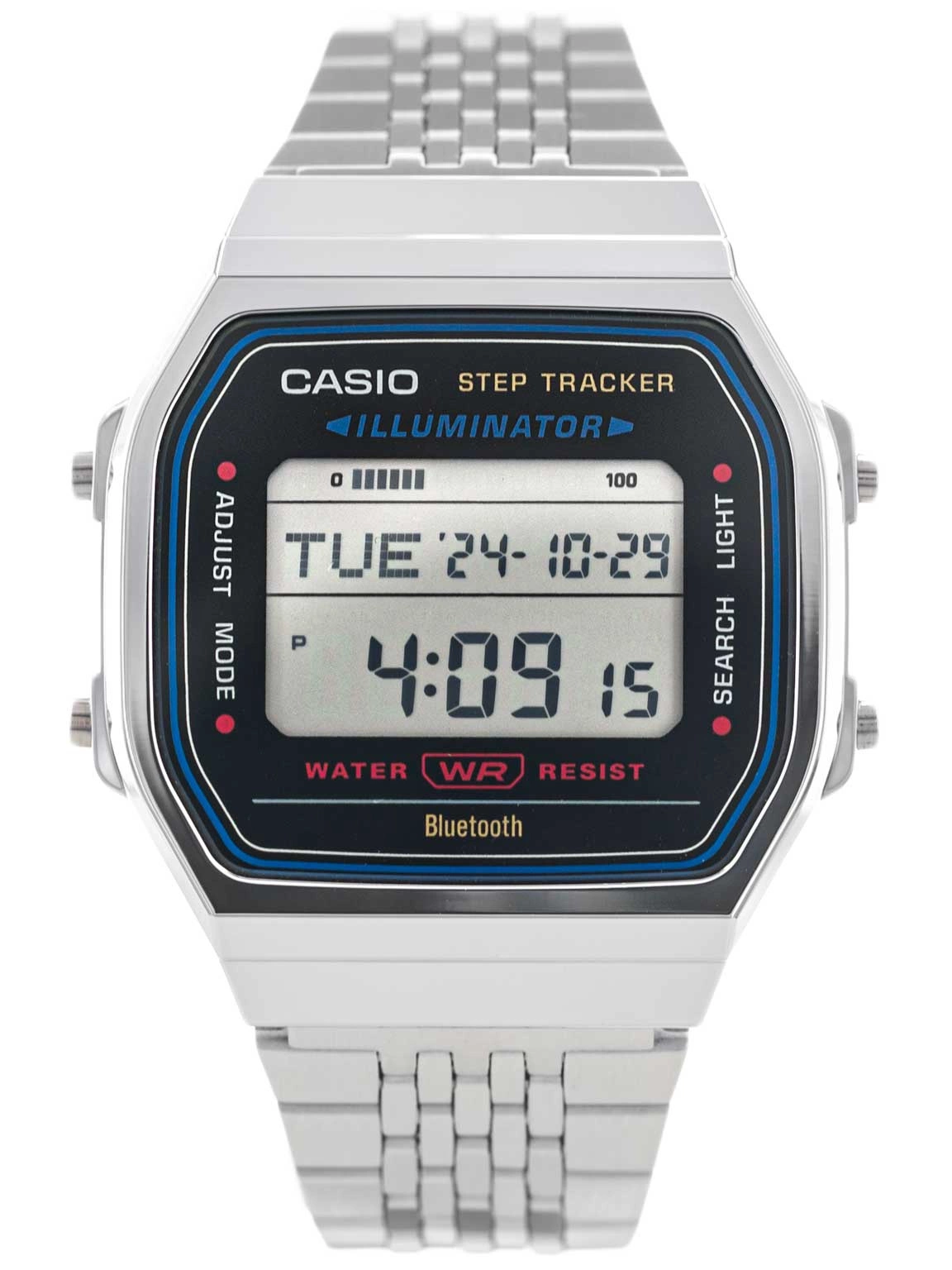 - Bluetooth: pozwala na bezprzewodowe połączenie się z telefonem i sterowanie funkcjami, m.in. krokomierz: wykres liczby kroków z pięcioma poziomami intensywności ćwiczeń, wyświetlanie spalonych kalorii, rejestr danych pomiarowych stopera, automatyczna regulacja czasu (4 razy dziennie), czas światowy dla około 300 miast