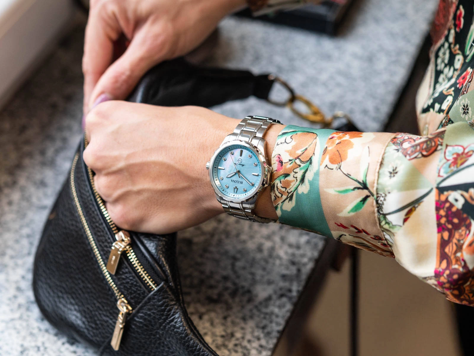 Damski zegarek Bulova 96P248 Marine Star to niezwykle elegancki i starannie zaprojektowany czasomierz, który stanowi idealne uzupełnienie zarówno codziennych, jak i wyjściowych stylizacji. Jego srebrna koperta, wykonana z wysokiej jakości stali szlachetnej, skrywa niezawodny japoński mechanizm kwarcowy, który zapewnia precyzyjne działanie. Solidna konstrukcja zegarka obejmuje zakręcany dekiel ze stali szlachetnej, który dodatkowo chroni wnętrze przed czynnikami zewnętrznymi. Na wyjątkową uwagę zasługuje tarcza w subtelnym, błękitnym odcieniu, wykończona masą perłową, która nadaje zegarkowi niepowtarzalnego blasku. Na jej powierzchni rozmieszczono eleganckie srebrne indeksy oraz osiem lśniących diamentów, co nadaje zegarkowi luksusowy charakter. Godzina dwunasta została wyróżniona logo marki, natomiast godziny trzecia, szósta i dziewiąta oznaczono srebrnymi liniowymi indeksami. Całość dopełniają srebrne wskazówki z fosforyzującymi elementami neobrite, które umożliwiają odczyt godziny w słabszym oświetleniu, świecąc po wcześniejszym naświetleniu. Szafirowe szkło chroniące tarczę zegarka charakteryzuje się wyjątkową twardością i odpornością na zarysowania, co gwarantuje trwałość i nieskazitelny wygląd przez długi czas. Dzięki klasie wodoodporności 100M, zegarek Bulova 96P248 Marine Star nadaje się również do użytkowania w wodzie, co czyni go funkcjonalnym i wszechstronnym wyborem. Kopertę zegarka uzupełnia solidna bransoleta ze stali szlachetnej w odcieniach srebra z komfortowym dwudzielnym zapięciem motylkowym. Całość jest zapakowana w eleganckie pudełko sygnowane logo producenta, co czyni go doskonałym wyborem na prezent dla wyjątkowej osoby.