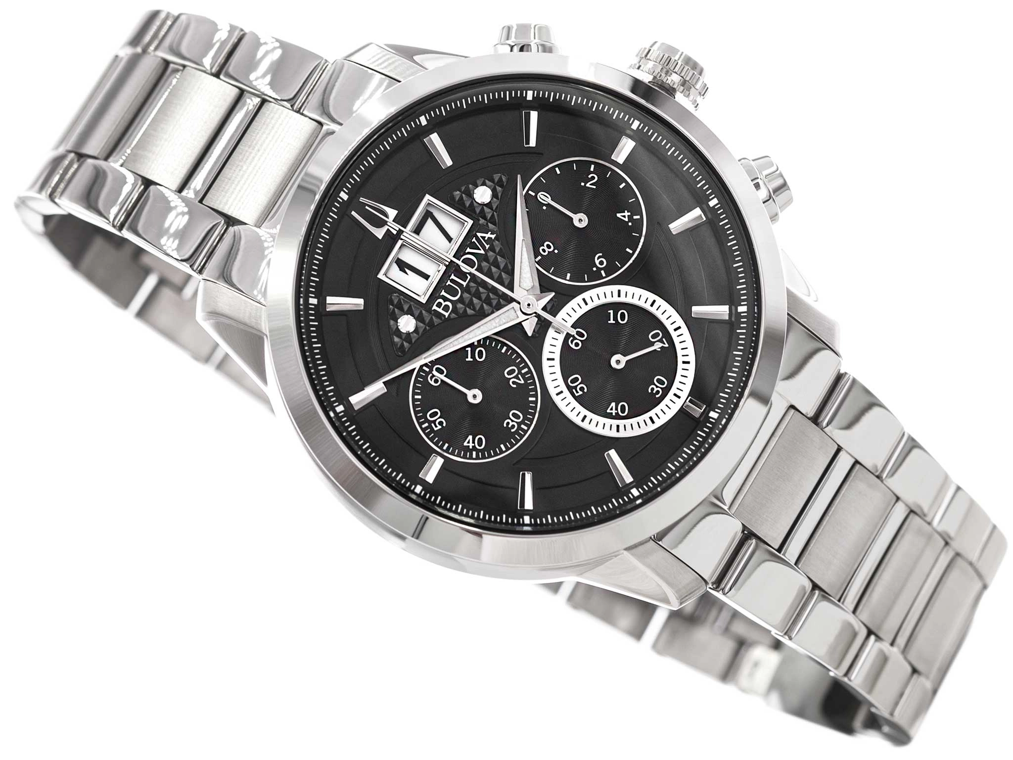 - Zegarek Męski Bulova 96B319 srebrny na bransolecie, posiada funkcję stopera, datownika i neobrite.