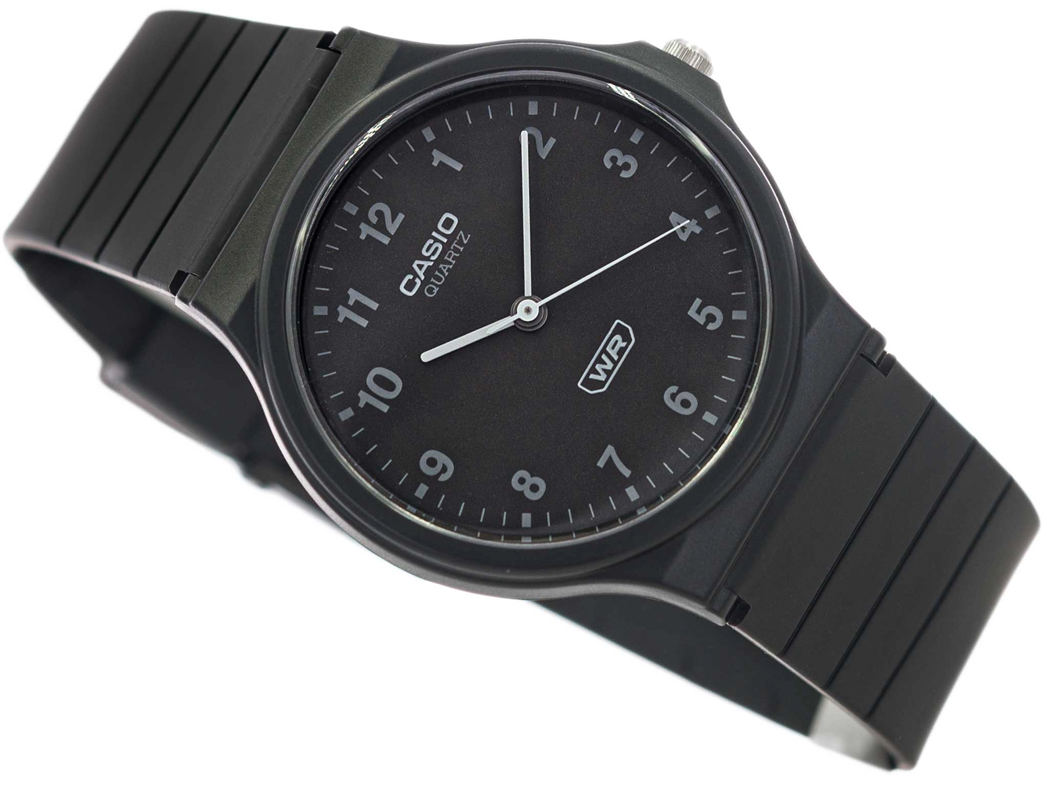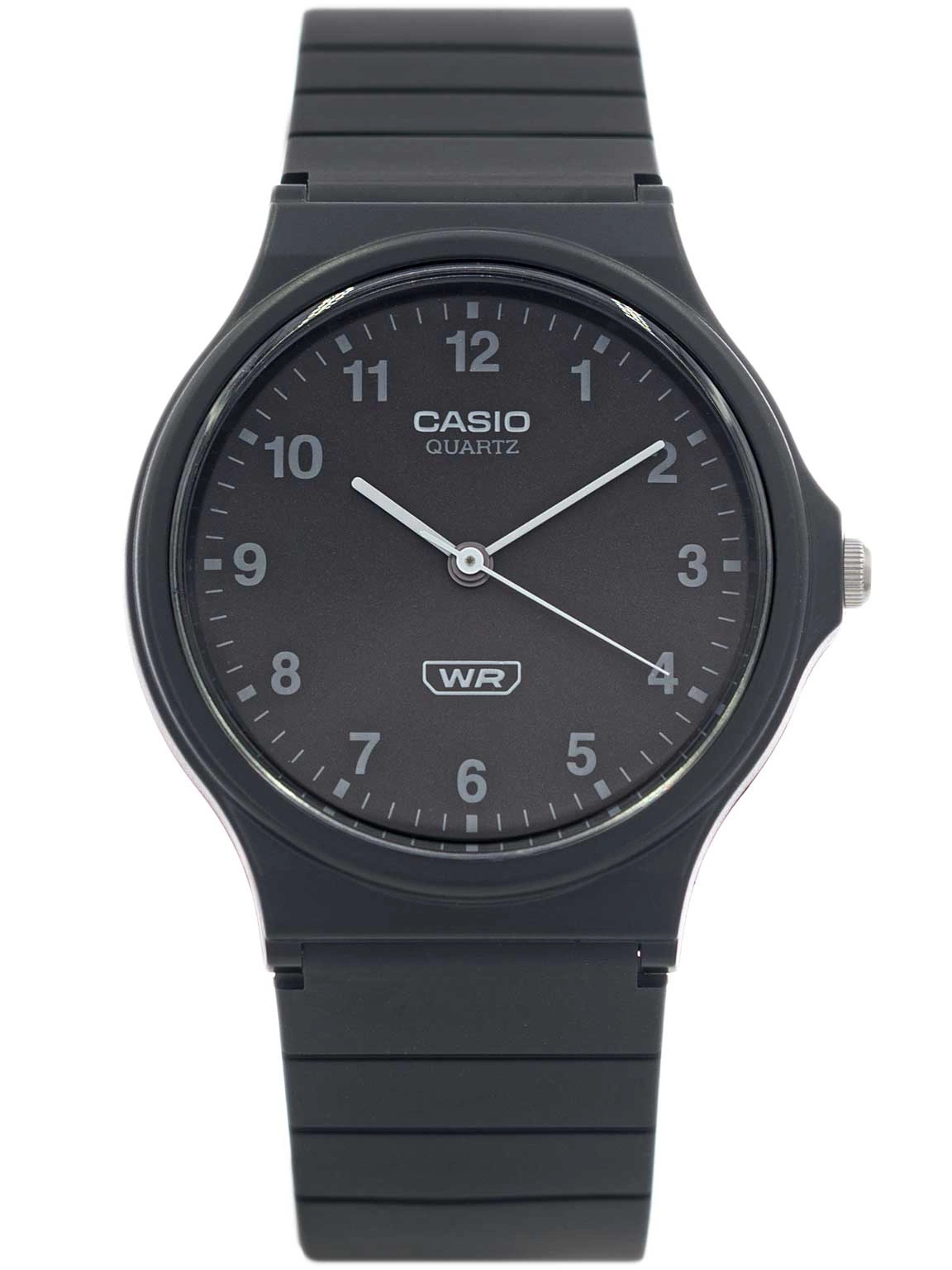 Casio MQ-24B-1BEF to klasyczny analogowy zegarek o lekkiej konstrukcji. W całości został wykonany z tworzywa sztucznego, co powoduje wysoki komfort i wygodę użytkowania. Na czarnej tarczy umieszczono kontrastowe szare wskazówki i indeksy w postaci cyfr arabskich. Model MQ-24B 1B jest bardzo wyraźny i czytelny. Sercem tego czasomierza jest japoński mechanizm kwarcowy - zasilany baterią, który od lat buduje zaufanie wśród klientów za sprawą swej niezawodnej pracy.