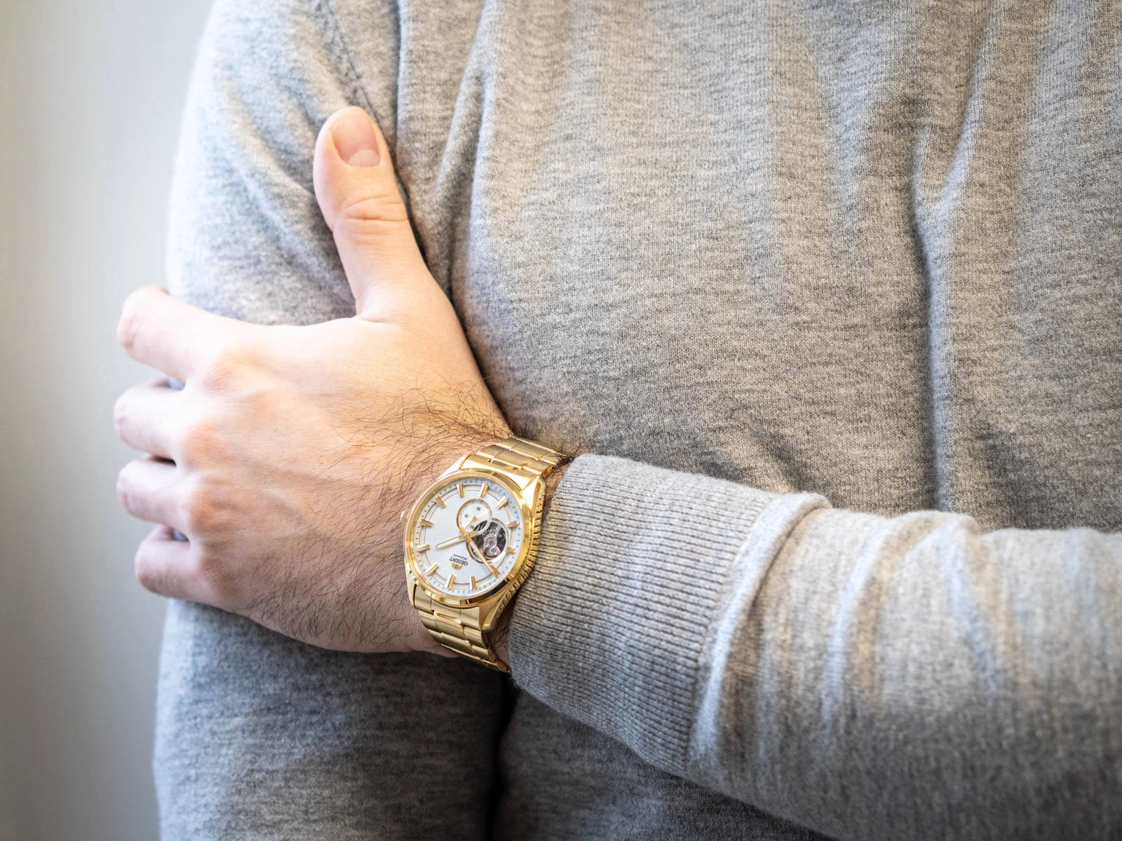 Koperta zegarka, wykonana z wysokiej jakości stali szlachetnej, pokryta została elegancką złotą powłoką, która podkreśla jego klasyczny charakter. Bransoleta w dopasowanym odcieniu złota, z wygodnym zapięciem motylkowym, zapewnia komfort i bezpieczeństwo noszenia. Bransoleta również została wykonana ze stali szlachetnej. Srebrna tarcza ozdobiona jedynie drobnym logo producenta jest przejrzysta i czytelna z minimalistycznymi indeksami liniowymi oraz smukłymi wskazówkami, wyposażonymi w warstwę luminescencyjną neobrite, co gwarantuje czytelność godziny nawet przy słabym oświetleniu. Całość chroni trwałe szkło szafirowe, które jest odporne na zarysowania, zachowując nieskazitelny wygląd zegarka przez wiele lat. Orient RA-AR0007S30B to nie tylko narzędzie do odmierzania czasu, ale również wyraz stylu i prestiżu. Jego uniwersalny design sprawia, że świetnie komponuje się zarówno z eleganckimi garniturami, jak i bardziej swobodnymi stylizacjami. To idealny wybór na prezent – eleganckie opakowanie, w którym jest dostarczany, dodatkowo podkreśla jego wyjątkowość. Ten czasomierz jest symbolem doskonałości, nowoczesnej technologii i ponadczasowego stylu, który doda charakteru każdemu, kto go nosi.