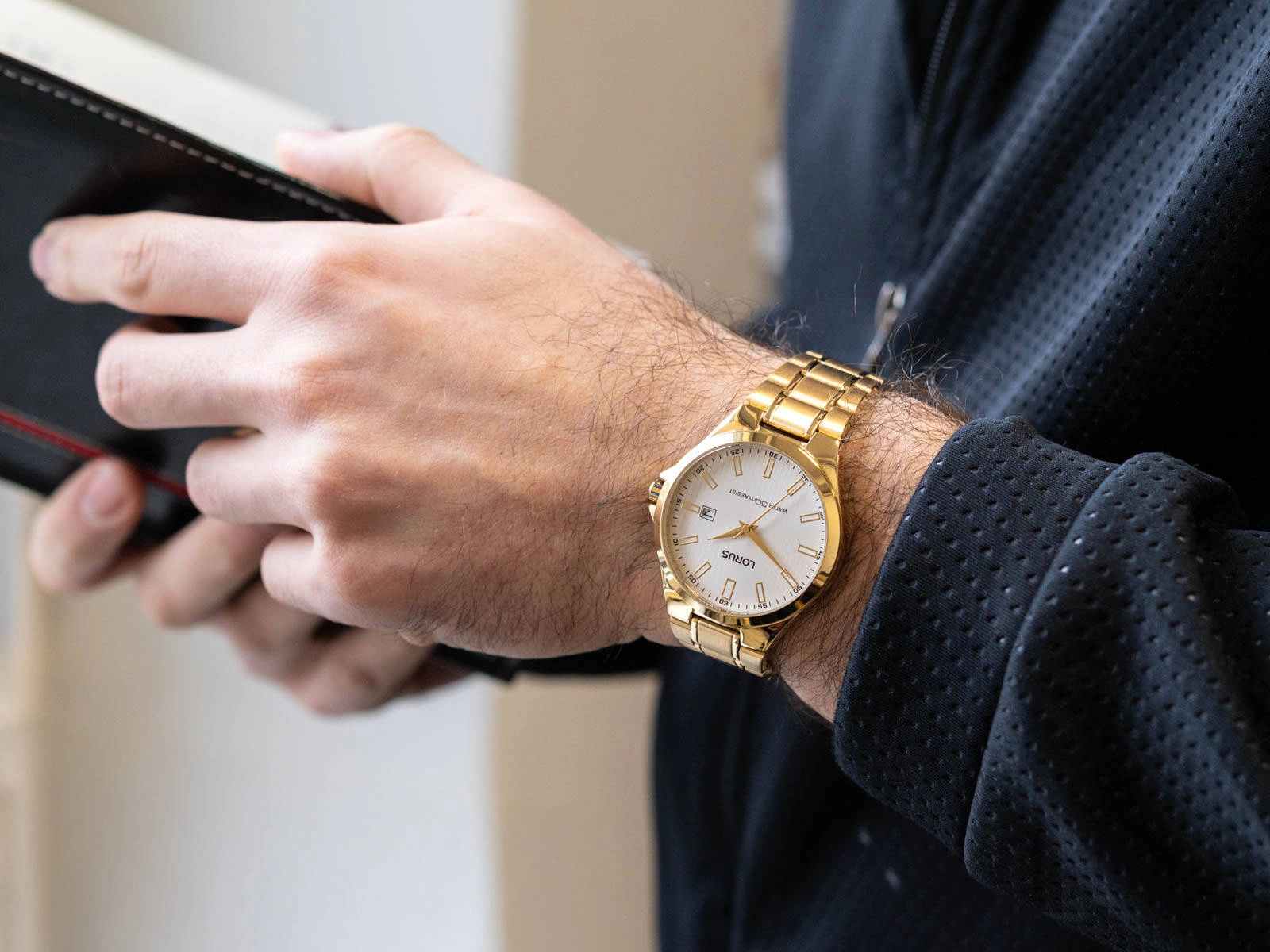 Lorus RH986KX9 to wyjątkowy zegarek, który harmonijnie łączy klasyczny styl z nowoczesną funkcjonalnością, stanowiąc doskonały wybór dla mężczyzn ceniących ponadczasową elegancję. Model ten zachwyca precyzją wykonania i solidną konstrukcją, będąc symbolem niezawodności i estetyki. Złota koperta, wykonana z najwyższej jakości stali szlachetnej, skrywa precyzyjny mechanizm kwarcowy, który zapewnia wyjątkową dokładność i długotrwałą niezawodność. Wytrzymała stalowa bransoleta w kolorze złotym jest nie tylko elegancka, ale także praktyczna dzięki zapięciu motylkowemu, które gwarantuje wygodę i bezpieczeństwo użytkowania. Srebrna tarcza zegarka została subtelnie zdobiona delikatną fakturą, która dodaje głębi i charakteru. Wyraźne, białe indeksy w złotych ramkach tworzą estetyczny kontrast, zapewniając jednocześnie doskonałą czytelność. Zegarek wyposażono w funkcjonalny datownik umieszczony na godzinie trzeciej, który ułatwia codzienne korzystanie. Całość chroni trwałe mineralne szkło, odporne na zarysowania, co czyni ten model praktycznym towarzyszem zarówno na co dzień, jak i w bardziej wymagających sytuacjach. Lorus RH986KX9 to esencja elegancji i wszechstronności, która sprawdzi się idealnie zarówno jako codzienny dodatek, jak i element formalnej stylizacji. To zegarek, który podkreśli osobowość i styl właściciela, niezależnie od okazji.