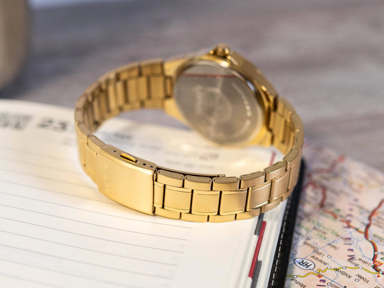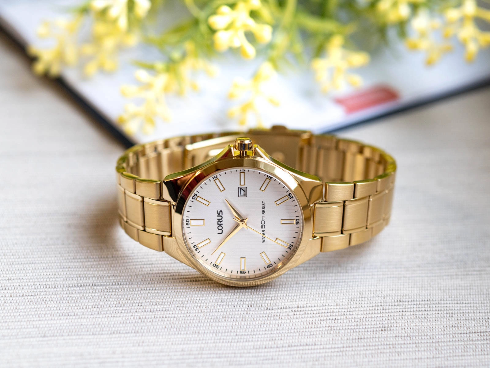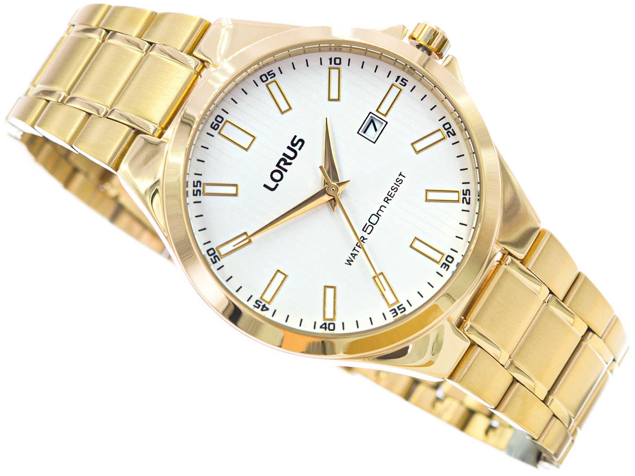 - Zegarek Męski Lorus RH986KX9 złoty na bransolecie, posiada funkcję datownika.