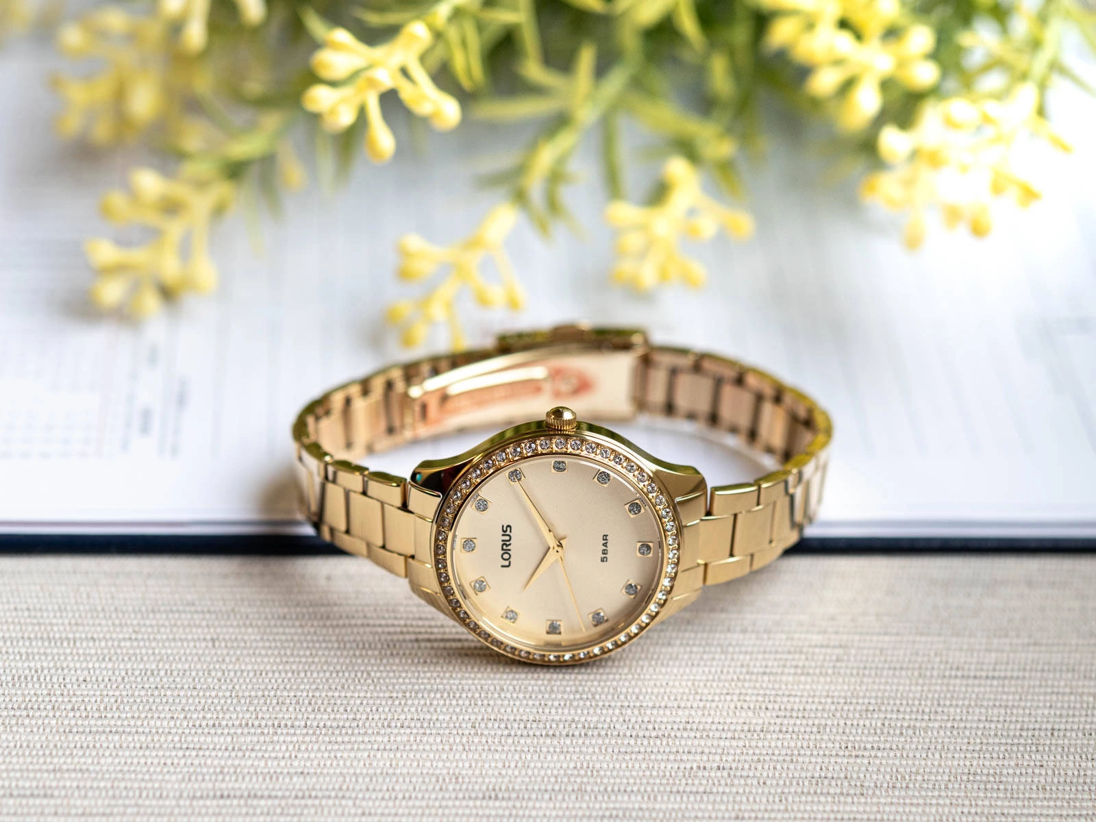 • Zegarek Damski Lorus RG284RX9 złoty na bransolecie.