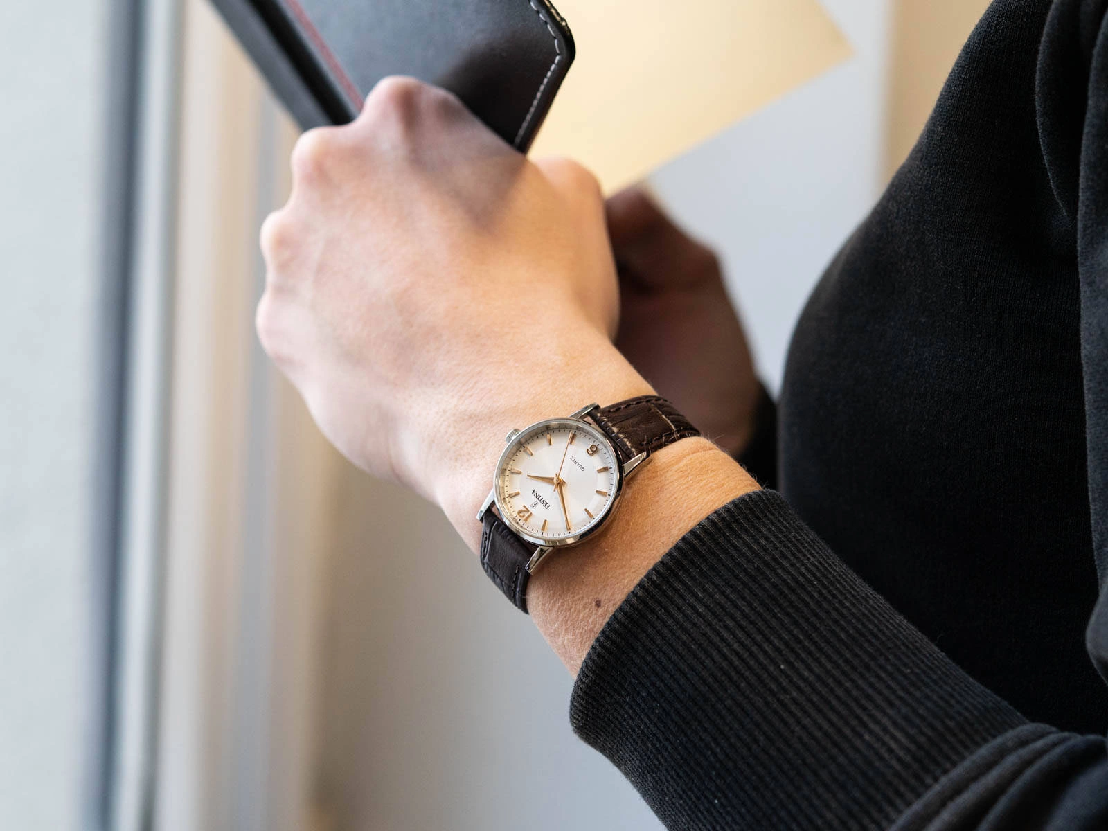 Festina F20691/2 z serii Classic Strap to damski zegarek analogowy, który łączy w sobie minimalistyczną elegancję i ponadczasowy styl. Model ten wyróżnia się czytelną srebrną tarczą, na której umieszczono indeksy oraz smukłe wskazówki, wykonane w odcieniu różowego złota. Delikatny kontrast zapewnia harmonijny wygląd i łatwość odczytu godziny. Całość chroniona jest przez trwałe szkiełko mineralne, odporne na codzienne zarysowania. Sercem zegarka jest precyzyjny mechanizm kwarcowy zasilany baterią, znany ze swojej niezawodności i dokładności. Smukła koperta oraz brązowy pasek o klasycznym kroju nadają czasomierzowi subtelnego charakteru, dzięki czemu doskonale dopasowuje się do nadgarstka i z łatwością mieści się pod mankietem koszuli. Jego lekkość i wygoda noszenia sprawiają, że świetnie sprawdzi się w codziennym użytkowaniu. Festina F20691/2 to idealny wybór dla kobiet ceniących prostotę i uniwersalność. Spójna kolorystyka oraz elegancki design czynią ten model doskonałym uzupełnieniem zarówno biurowej stylizacji, jak i bardziej casualowych zestawów. Dodatkowo, zegarek zapakowany jest w szykowne pudełko producenta, co czyni go wyjątkowym prezentem na każdą okazję.