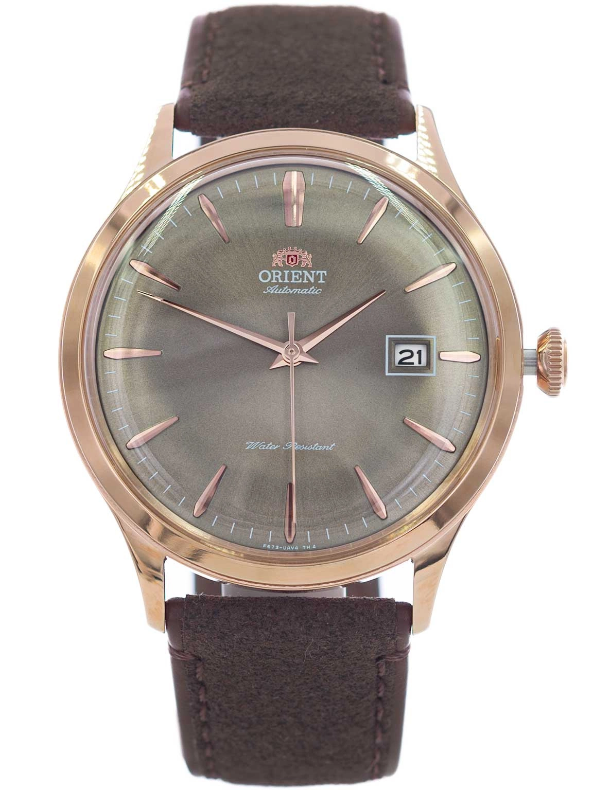 Tarcza zegarka w ciepłym odcieniu brązu charakteryzuje się minimalistycznym, ale eleganckim designem. Precyzyjnie wykonane indeksy i cienkie wskazówki w kolorze różowego złota, kontrastują z ciemniejszym tłem tarczy, co nadaje zegarkowi wyrafinowanego wyglądu. Zegarek wyposażony jest także w praktyczny datownik na godzinie trzeciej, który umożliwia łatwe odczytanie daty. Całość jest chroniona przez szkło mineralne, które gwarantuje odporność na drobne zarysowania i wysoką przejrzystość. Model Orient RA-AC0P04Y30B Bambino jest dostarczany w eleganckim opakowaniu, które sprawdzi się jako opakowanie na prezent. To zegarek, który łączy w sobie klasyczny styl, nowoczesną technologię i niezawodną precyzję, stanowiąc doskonały wybór na każdą okazję.